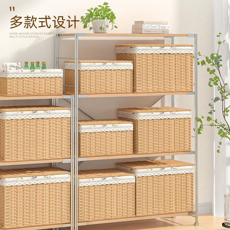 编织收纳箱衣服收纳筐大容量衣物整理箱装玩具收纳盒家用带盖箱子