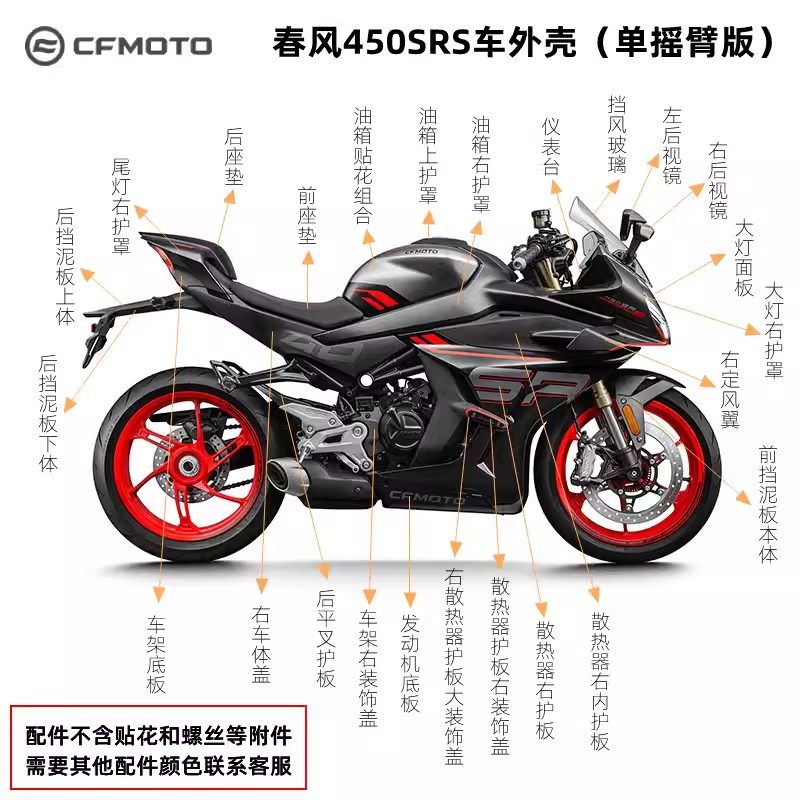 春风SR450SR 单摇臂星光白 全车外壳大灯护罩 大板尾罩底板塑料件