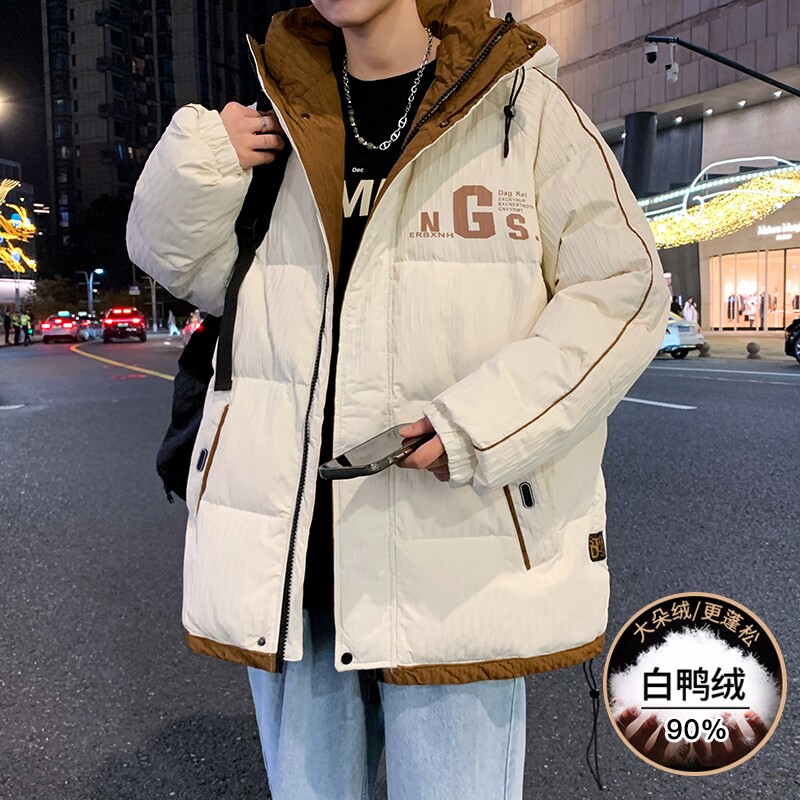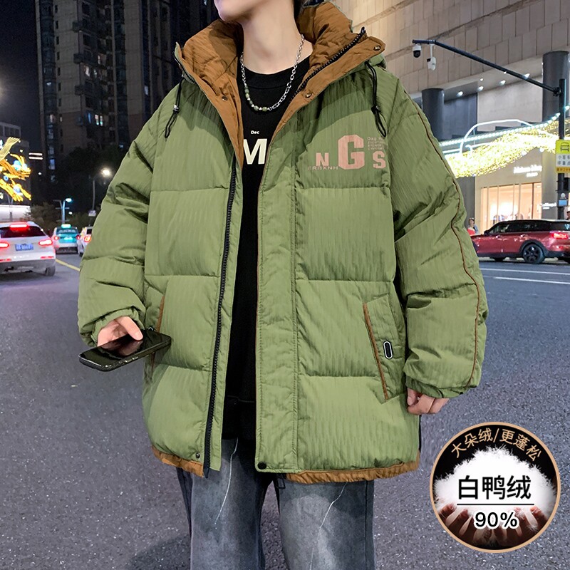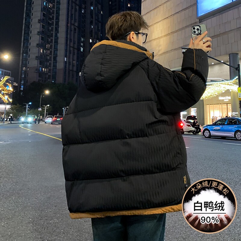 轻薄白鸭绒羽绒服男冬季初高中学生宽松面包服青少年男孩保暖外套