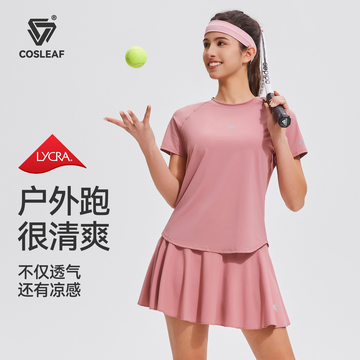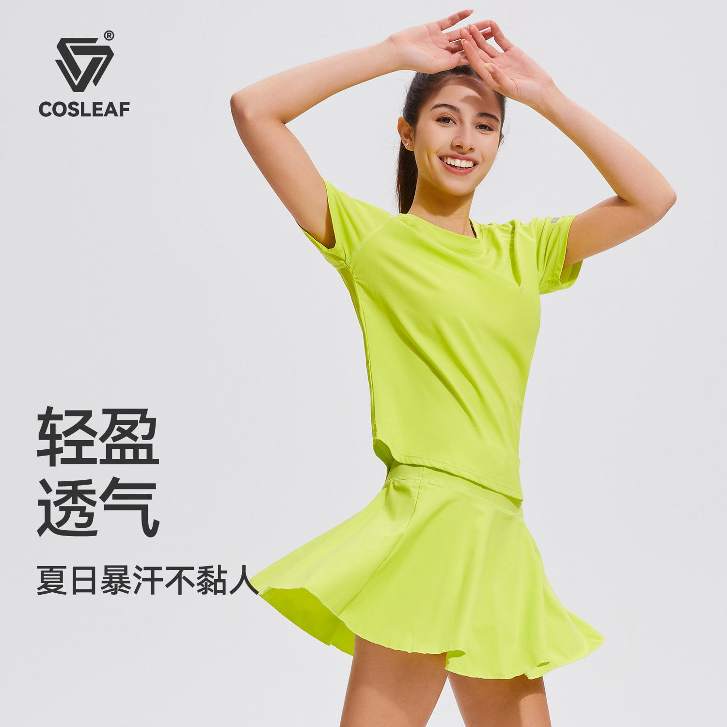 科里芙运动套装女晨跑服夏季短袖羽毛球马拉松跑步健身网球短裙