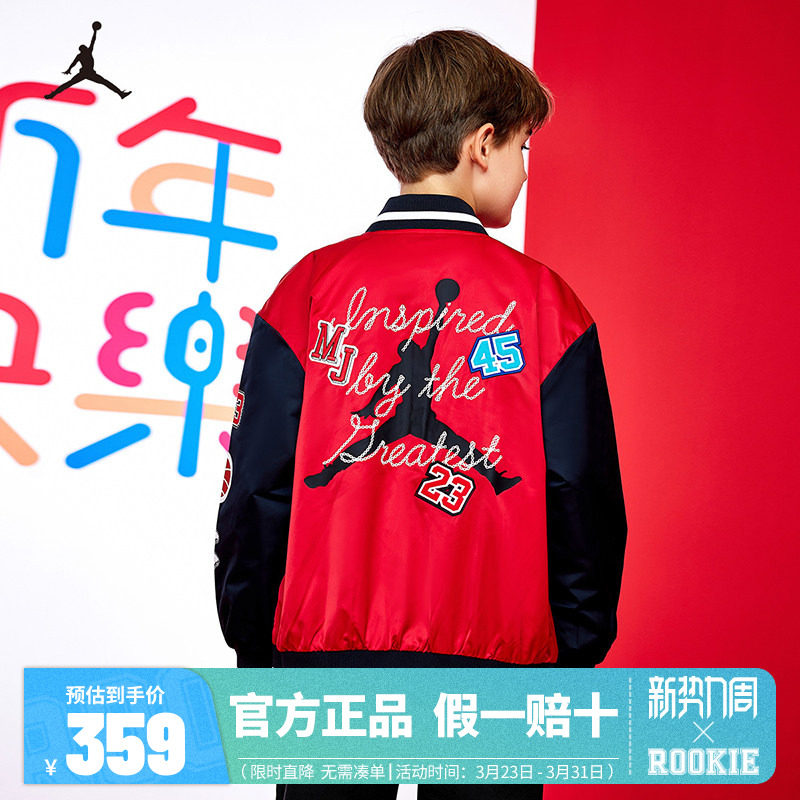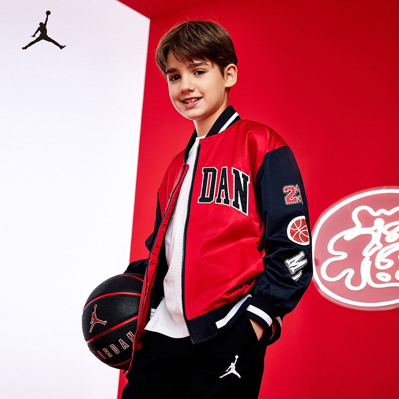 Jordan儿童装男童夹克春季新款大童篮球运动外套棒球服JD2412009