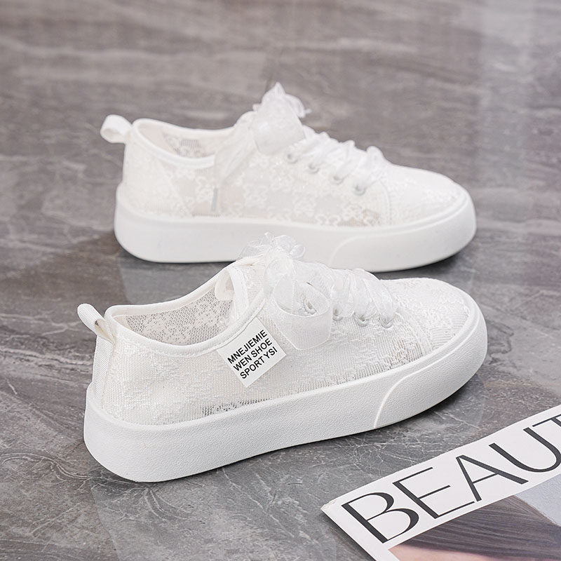 夏天鞋子透气小白鞋女2026新款夏季网面爆款蕾丝薄款板鞋网纱黑色