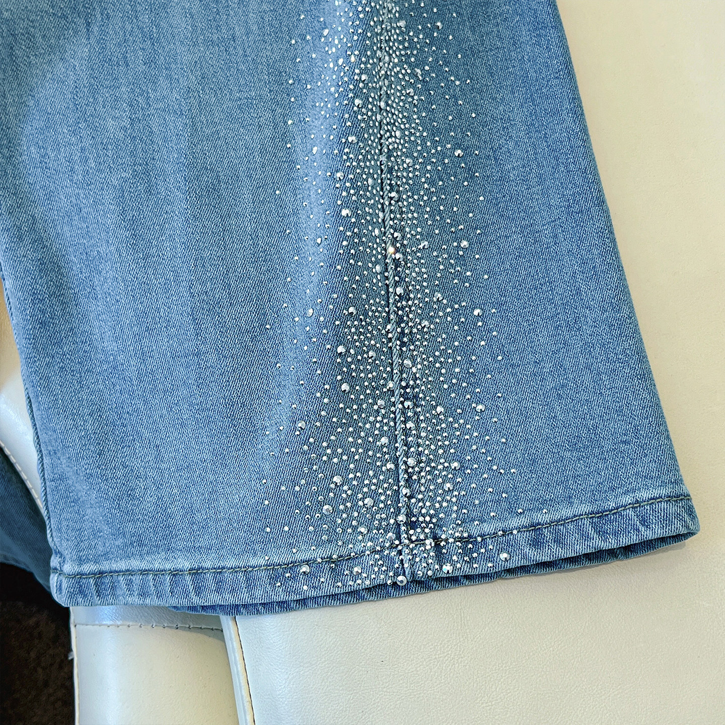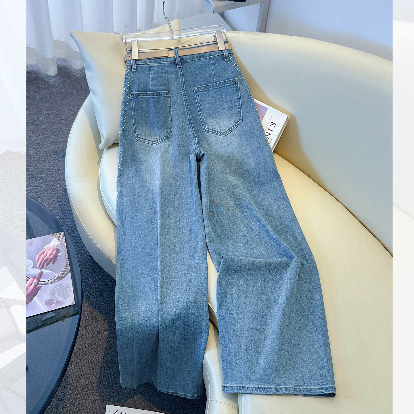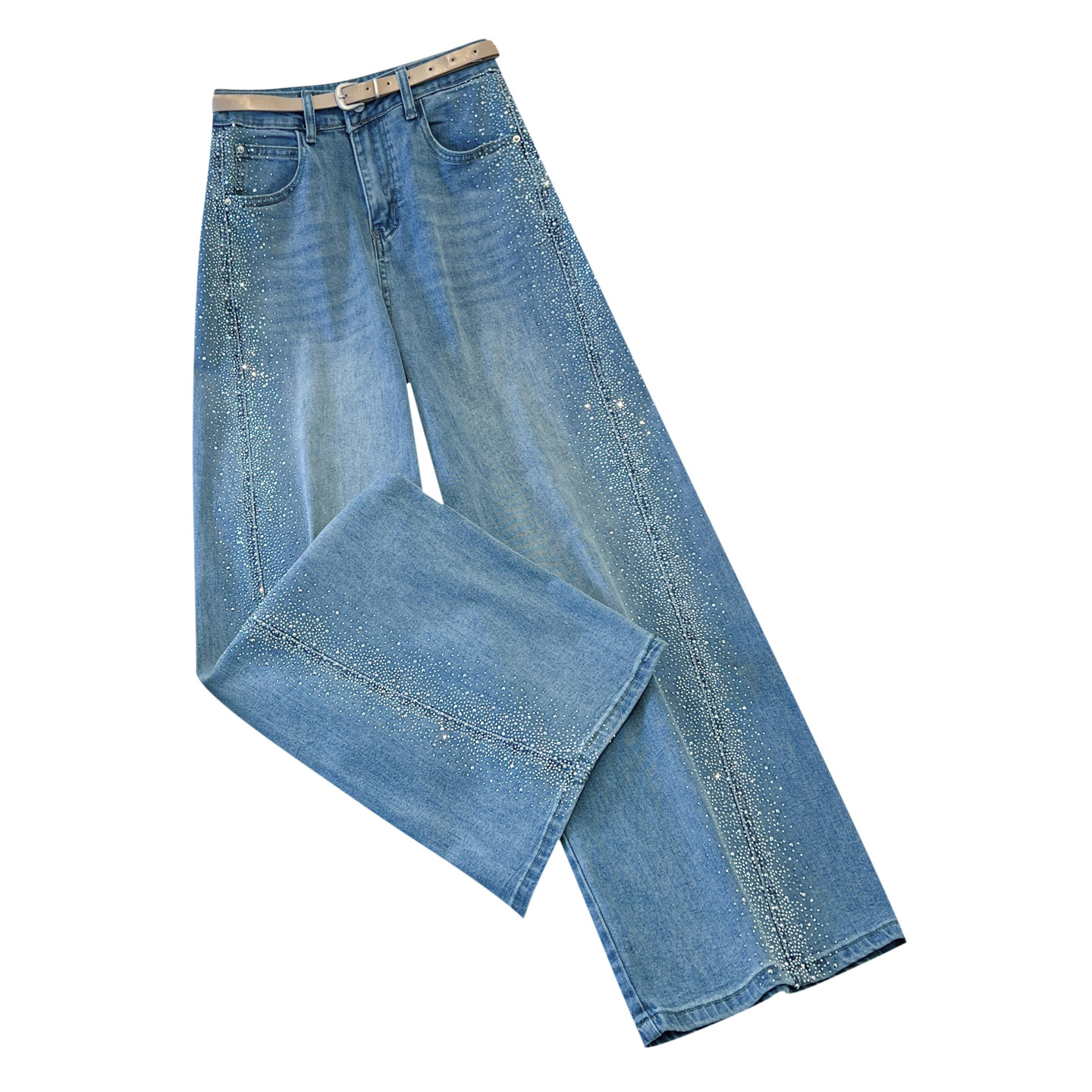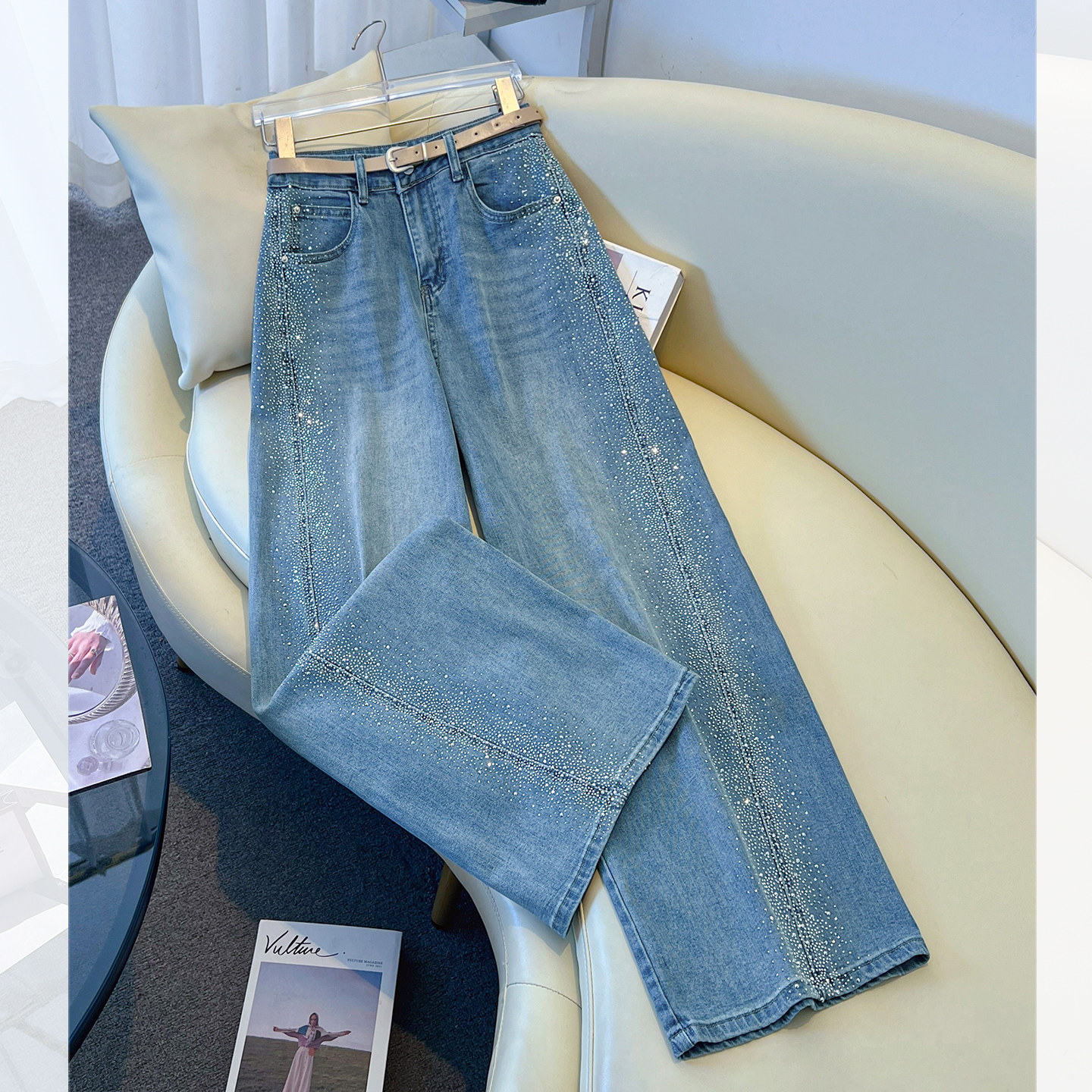 今年流行爆款烫钻高腰宽松阔腿弯刀牛仔裤女2026春季新款直筒裤子
