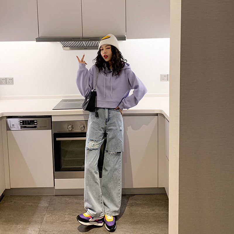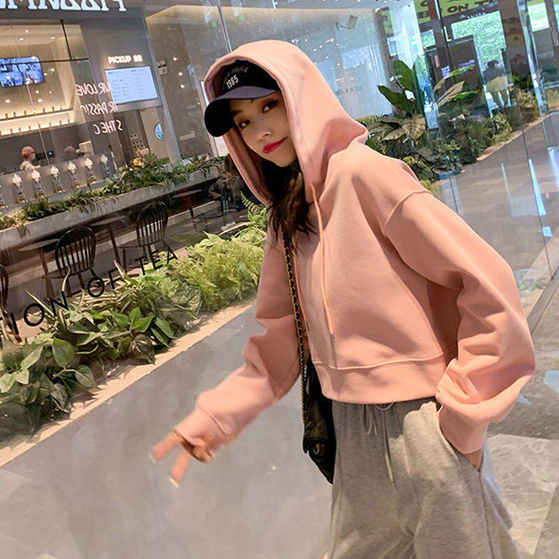 糖果色短款连帽卫衣女款秋冬2024新款爆款小个子套头长袖宽松上衣