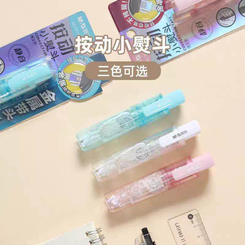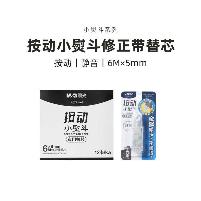 晨光按动式小熨斗静音修正带金属带头不翘边6m改错带小学生专用笔式涂改带可换芯涂改带高颜值可换替芯P1401