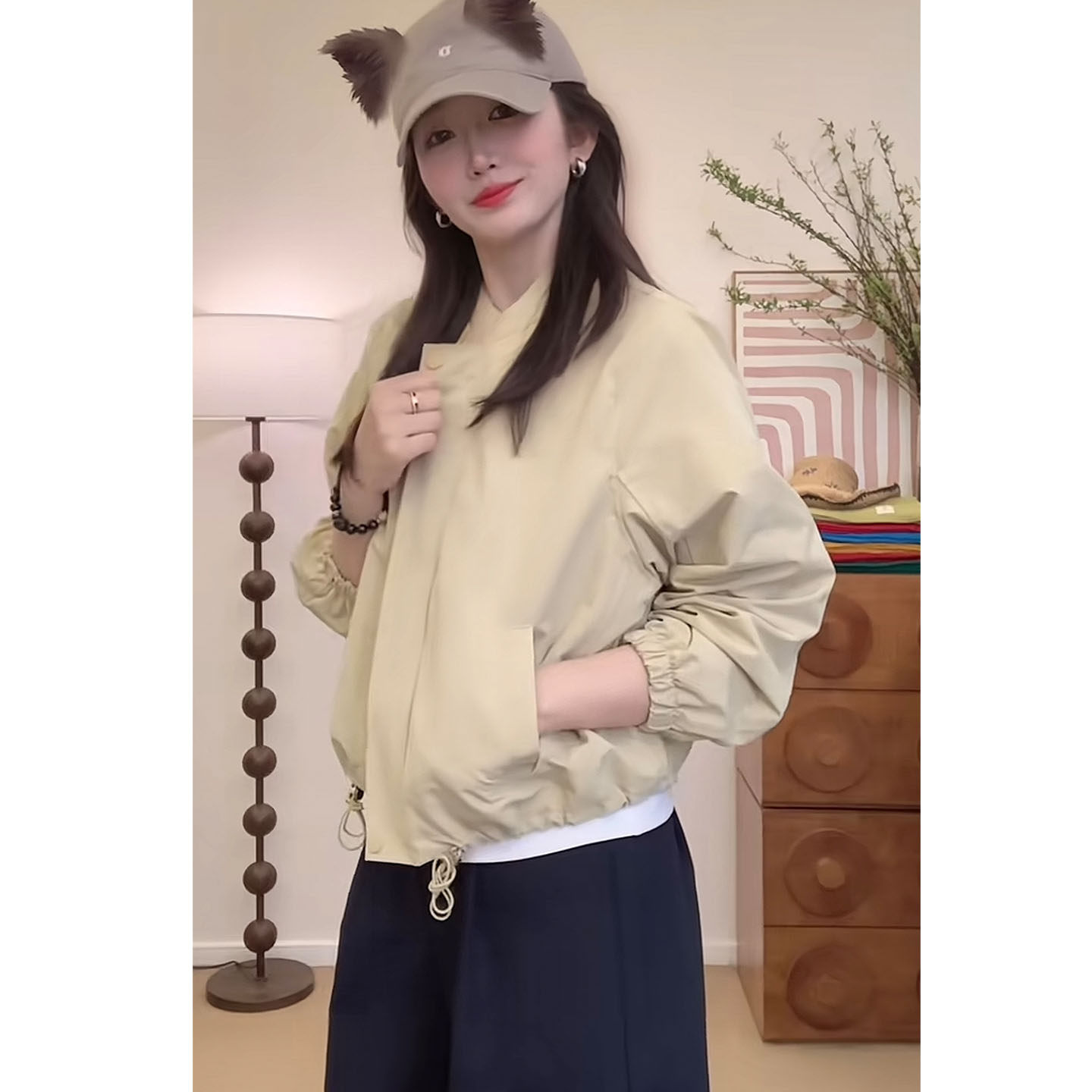 立领外套女款春韩版小个子百搭洋气2026新款高级感漂亮短夹克上衣