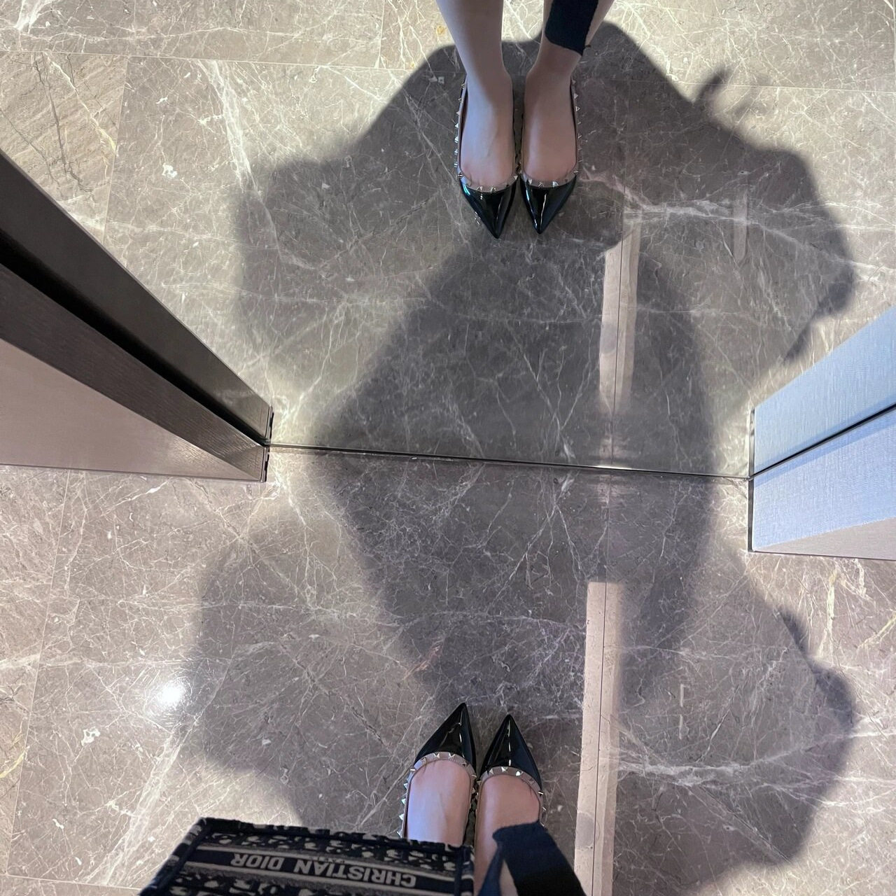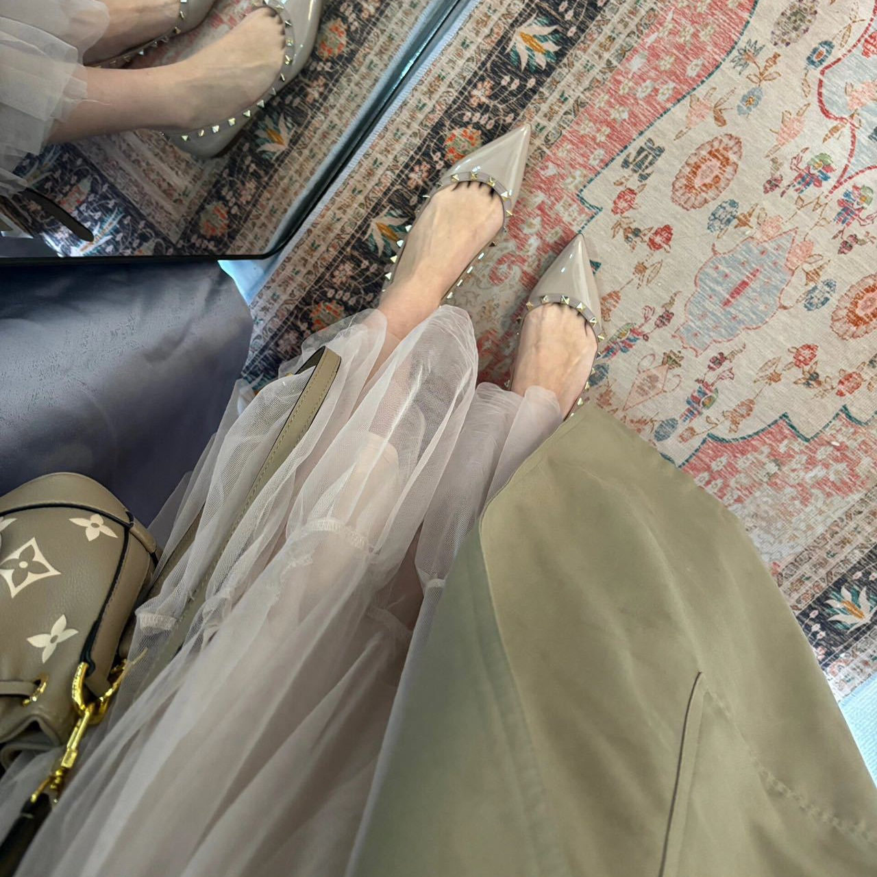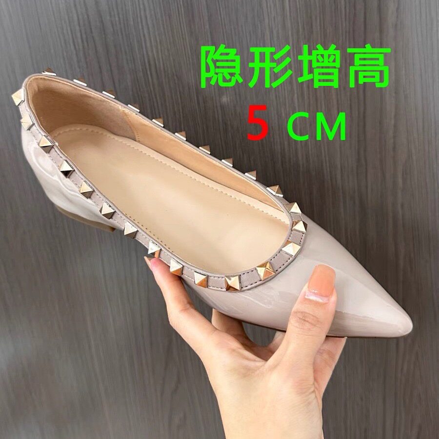 【现货】铆钉尖头内增高2025V家春夏新款浅口裸色柳钉百搭单鞋女