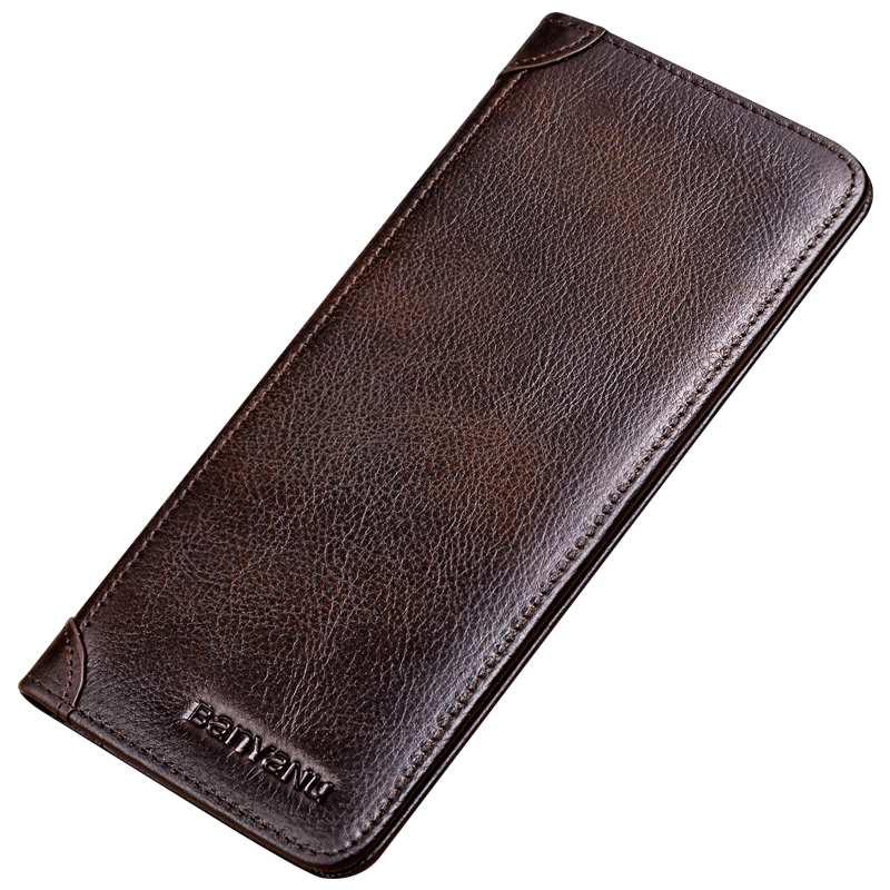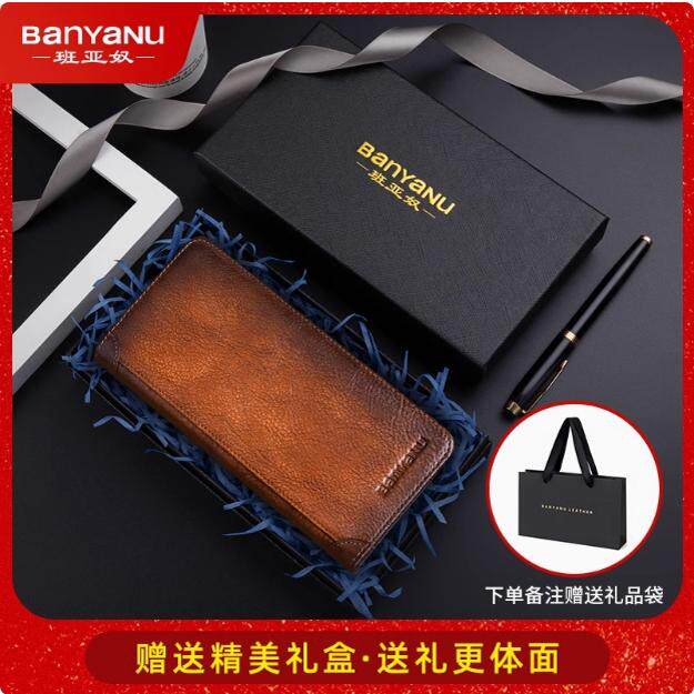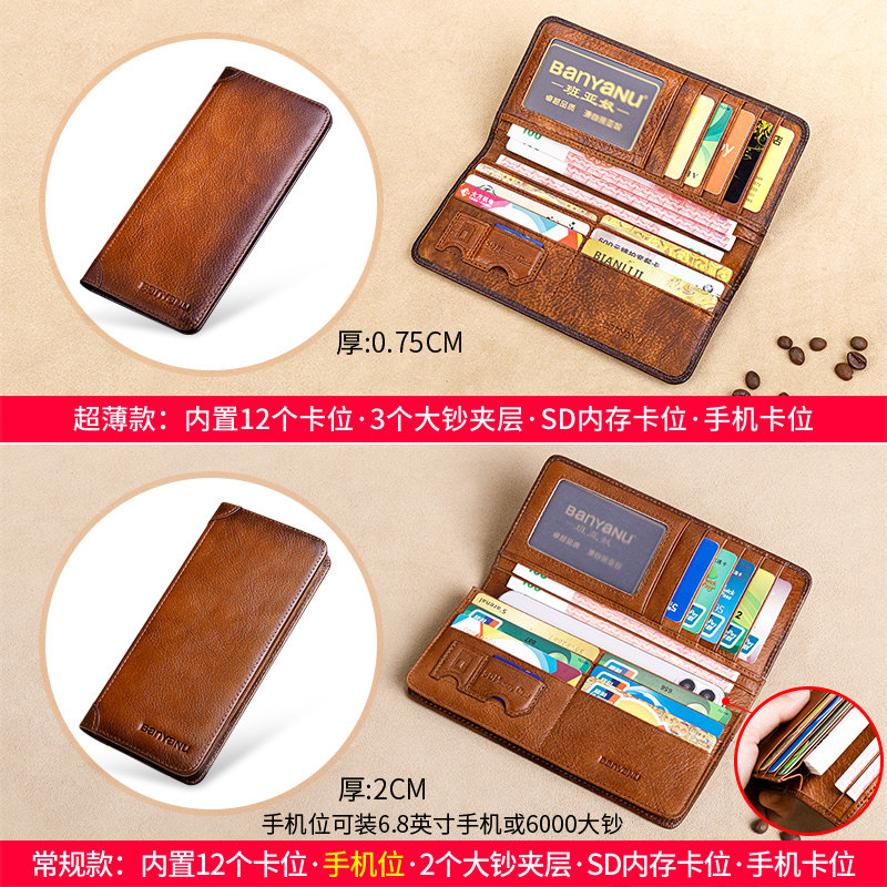 头层牛皮钱包商务男超薄长款真皮卡位多送礼复古竖款防盗刷皮夹子