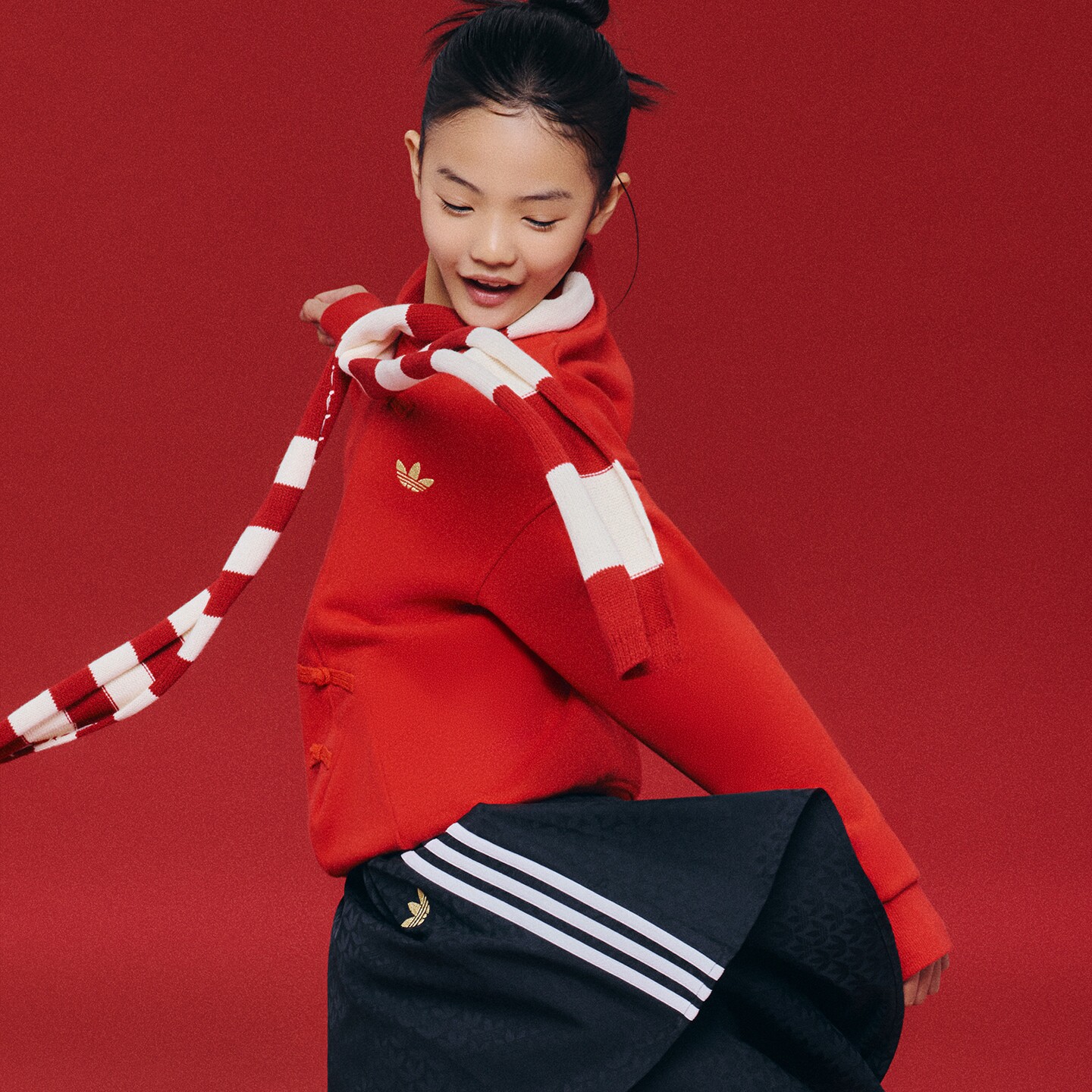 阿迪达斯三叶草女童新年款新中式针织运动宽松长袖卫衣套头衫