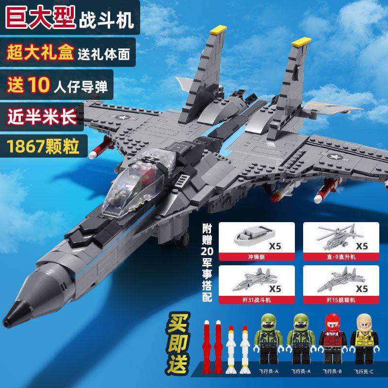2024新款飞机积木国产拼装益智玩具歼15模型男生男孩拼图6到12岁