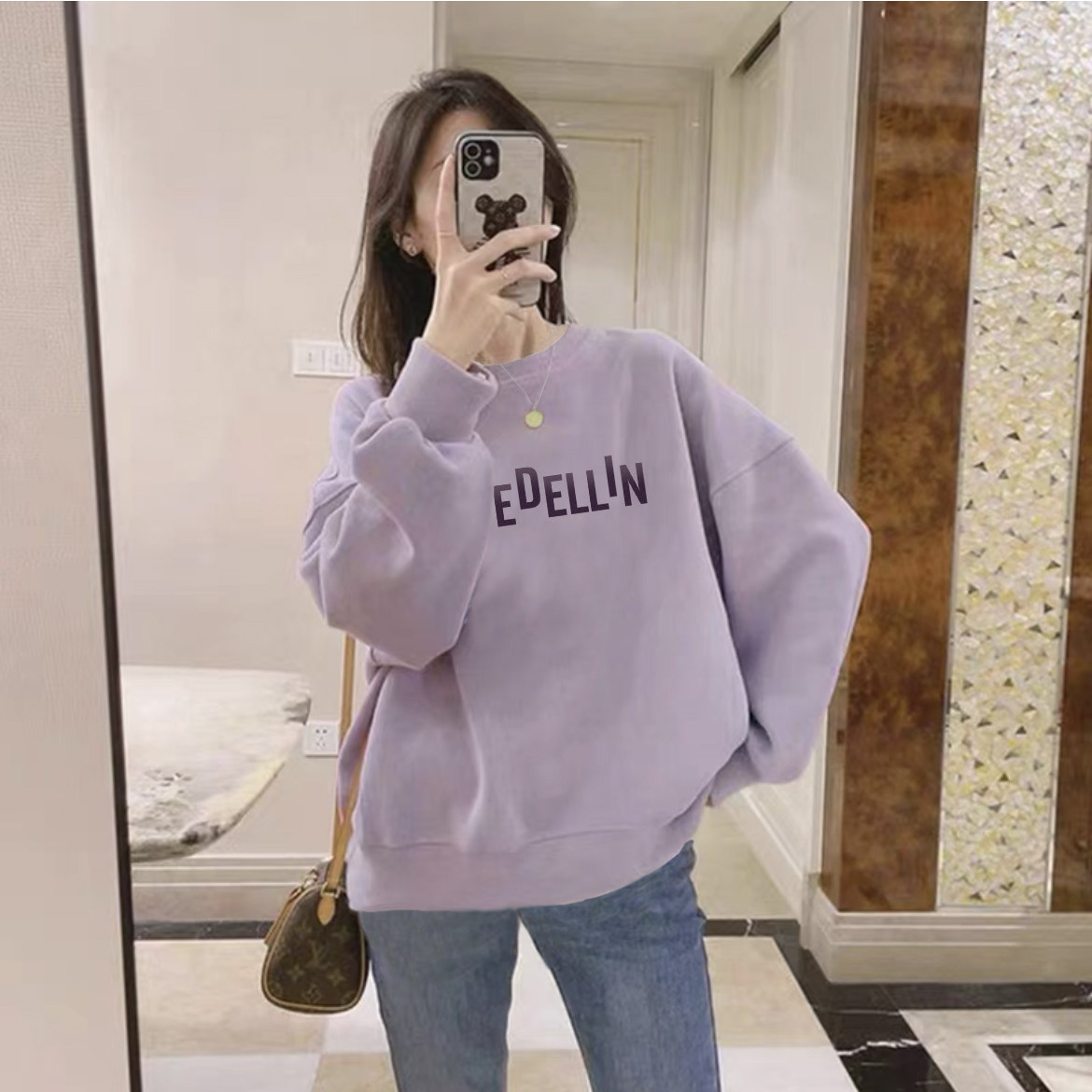 圆领卫衣女秋冬新款宽松外套大码胖mm洋气减龄打底衫加绒加厚上衣