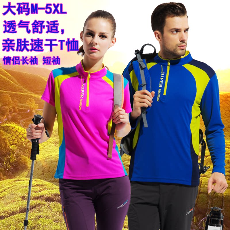 新款春夏户外运动男速干衣长袖情侣T恤女休闲大码快干衣团队服