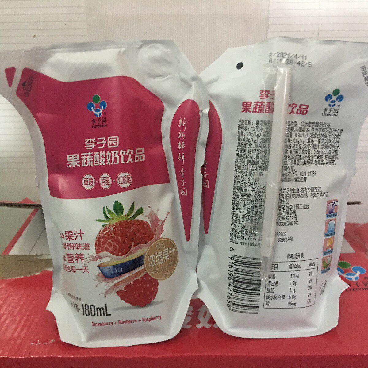 速发李子园甜牛奶轻巧包原味乳酸菌草莓果蔬酸奶健康饮品180ml*12