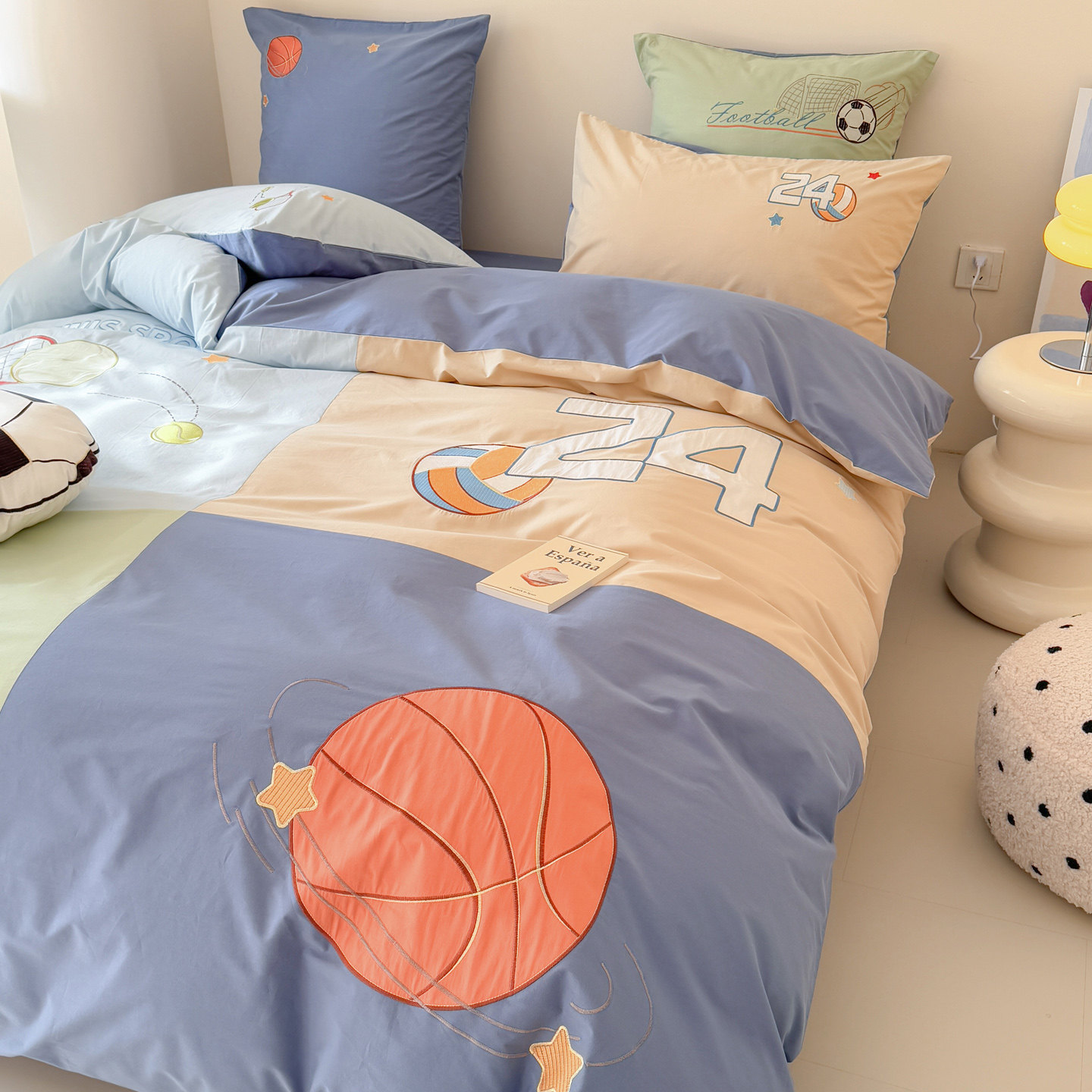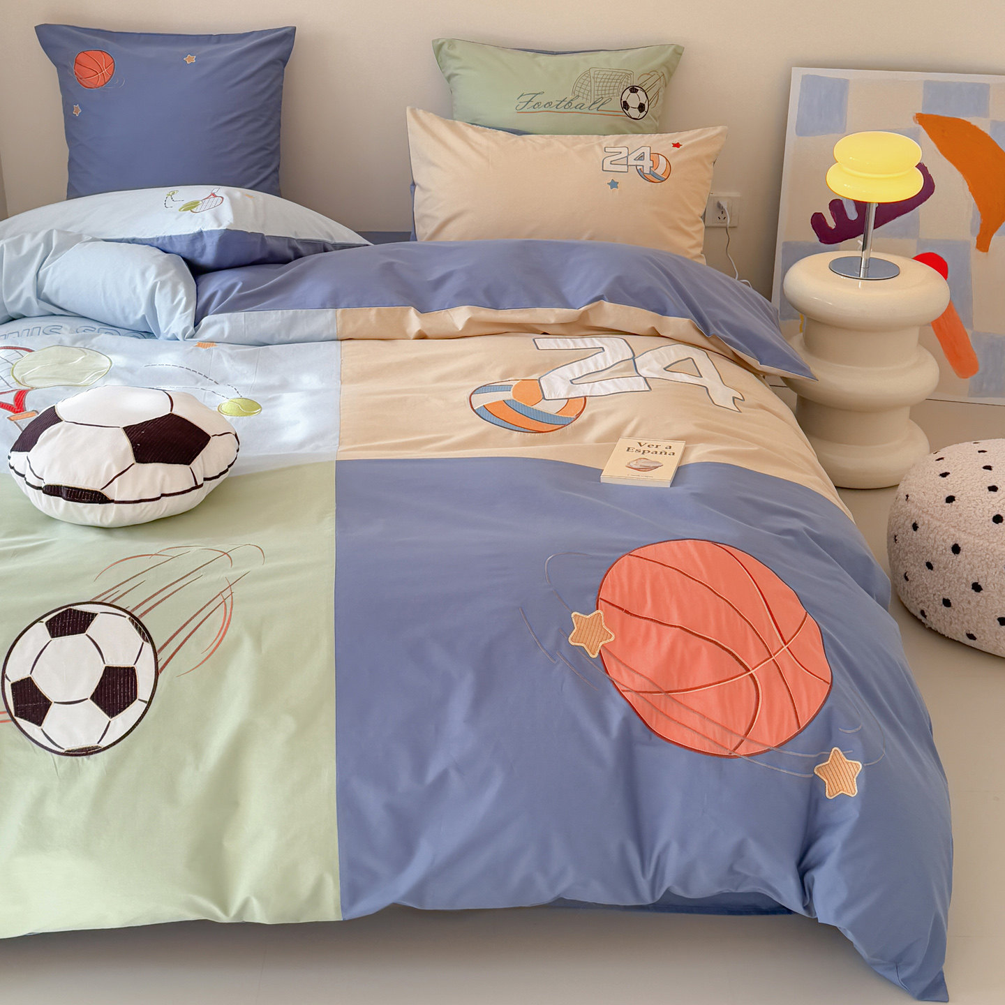 儿童卡通全棉水洗棉贴布绣四件套纯棉男孩床单被套床上用品春夏