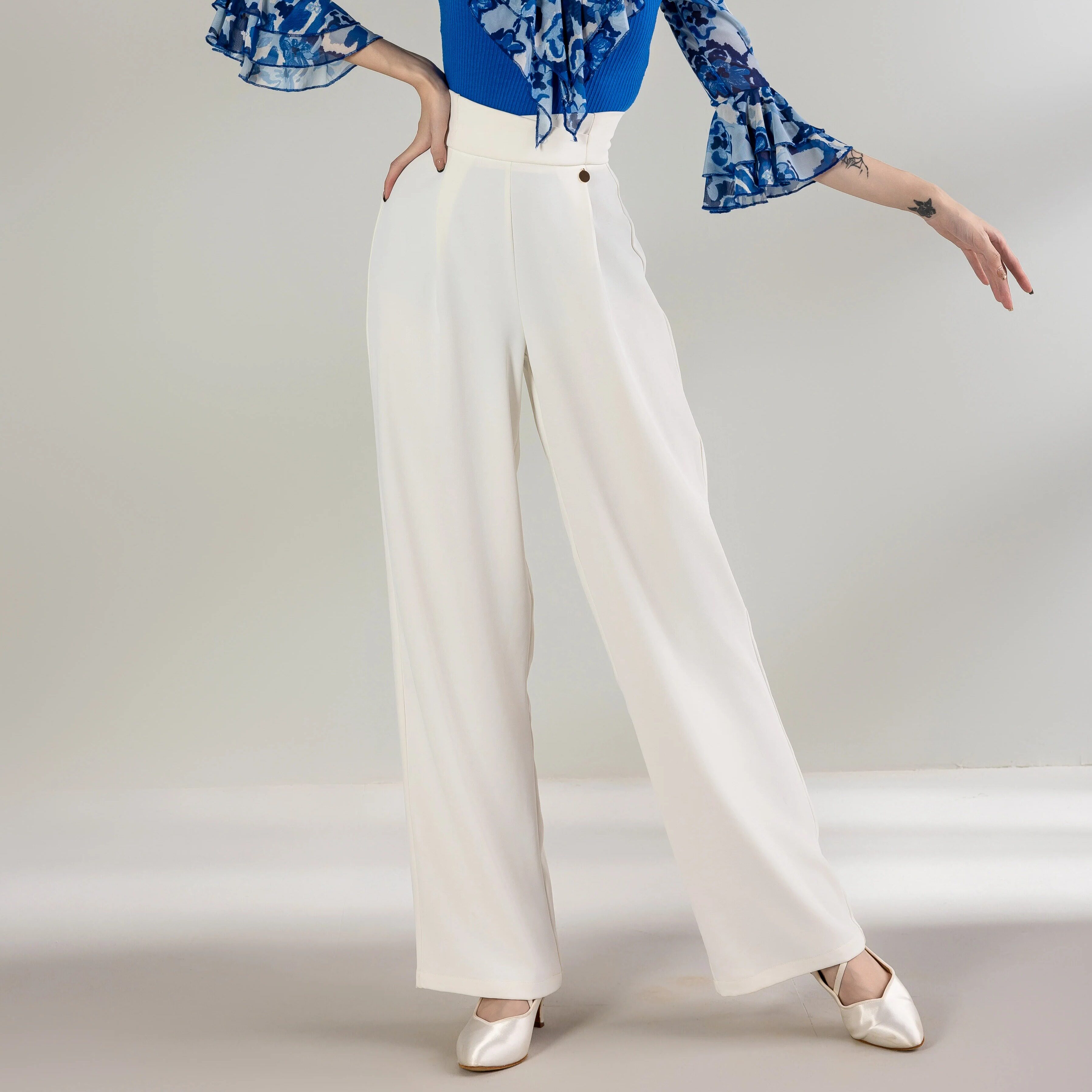 摩登新款高腰显瘦成人拉丁舞女裤跳吉特巴舞蹈长裤国标舞裤子MK01