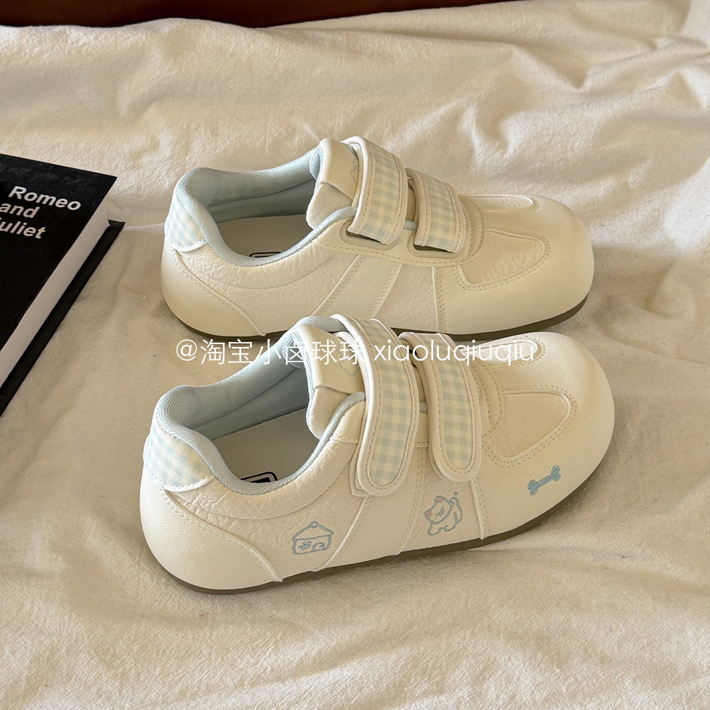 小卤球球魔术贴板鞋2026新款春季厚底小白鞋子女鞋百搭学生德训鞋