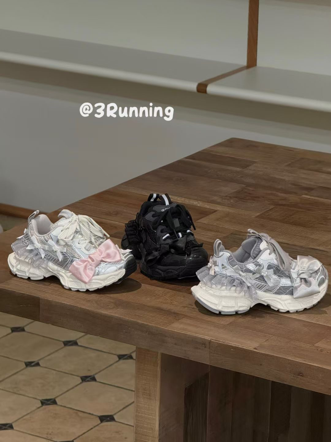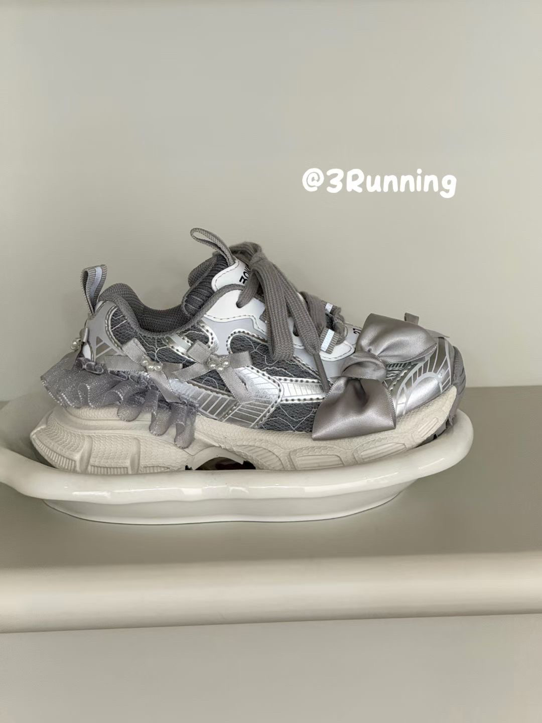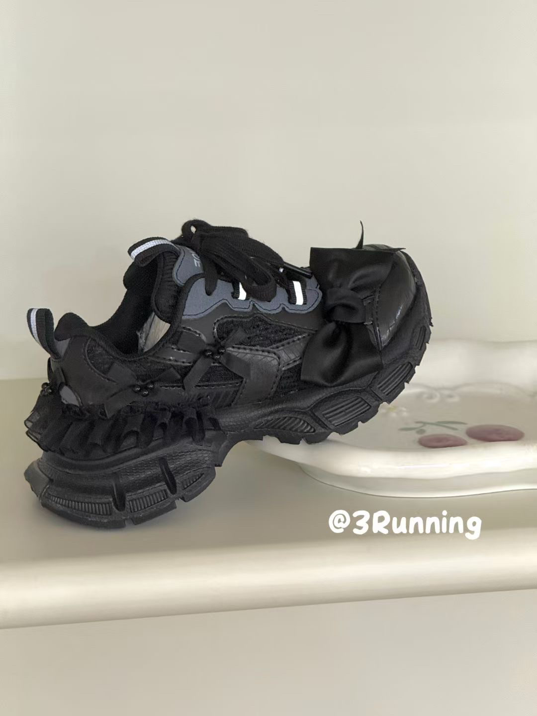 春秋季新款韩版童鞋潮牌3R中大女童魔术贴蕾丝防滑老爹鞋运动鞋