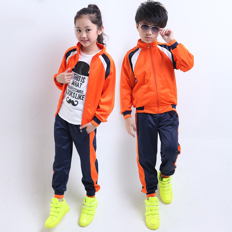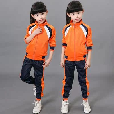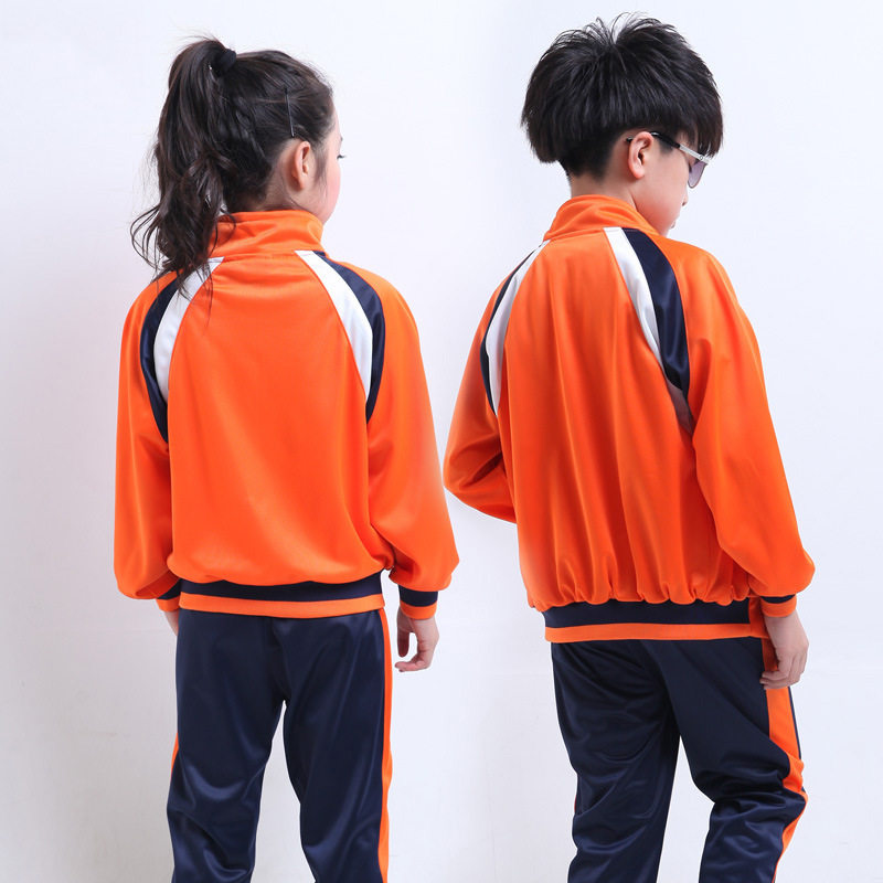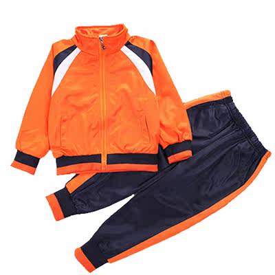 小学生班服幼儿园园服春季校服橙色金光绒纯棉条纹男女童运动套装