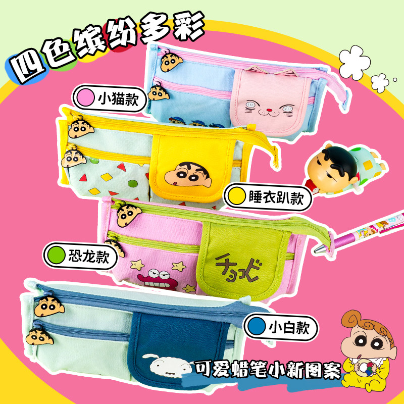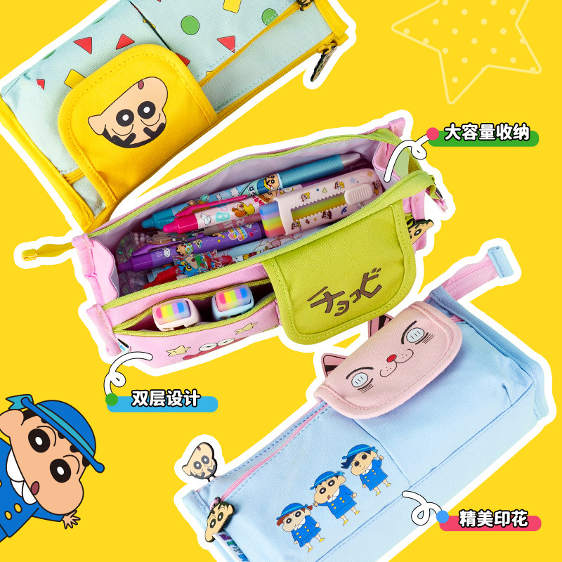 蜡笔小新多功能笔袋大容量多层文具袋男生可爱卡通初中生铅笔盒女孩儿童小学生高中生双层女生高颜值新款笔盒
