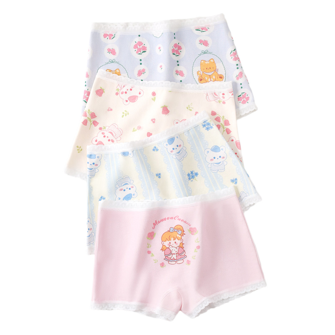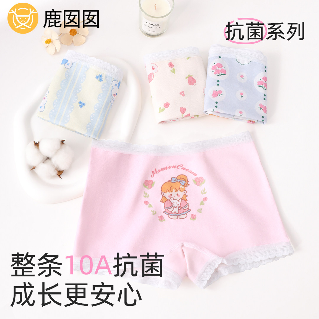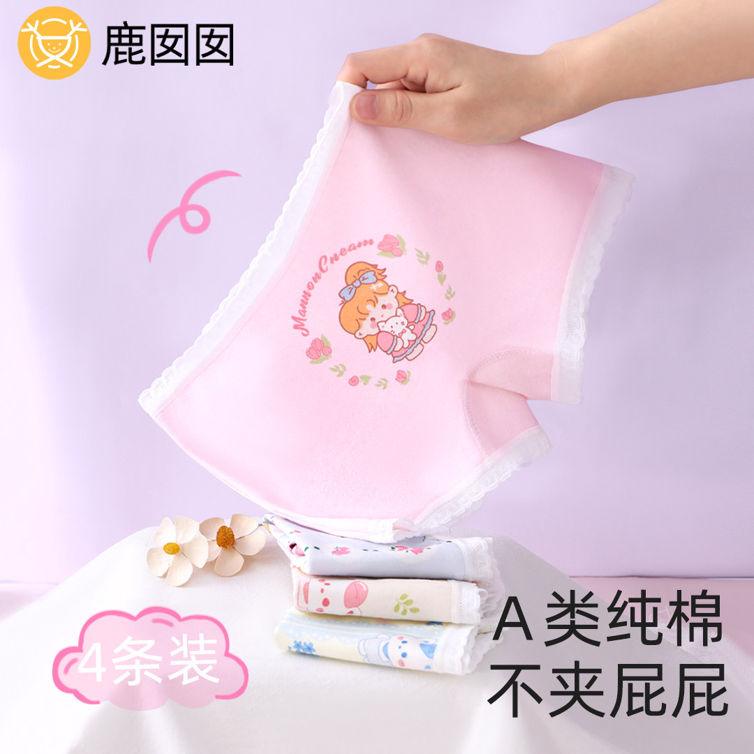 女童内裤纯棉2026新款儿童平角四角花边女孩小童全棉a类抗菌短裤