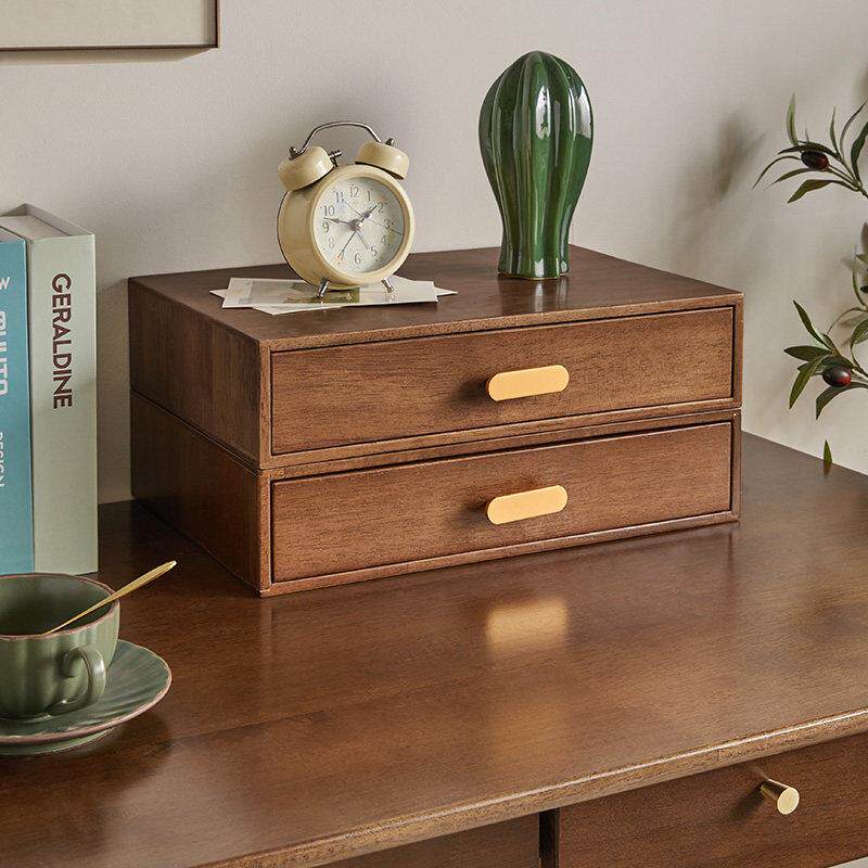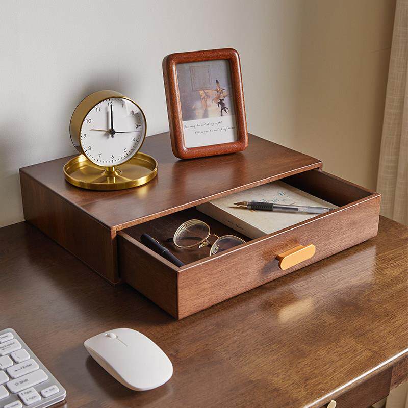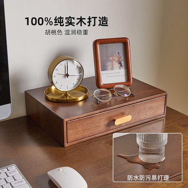 实木多层抽屉式桌面收纳盒家用办公室桌上文件储物盒电脑增高架子