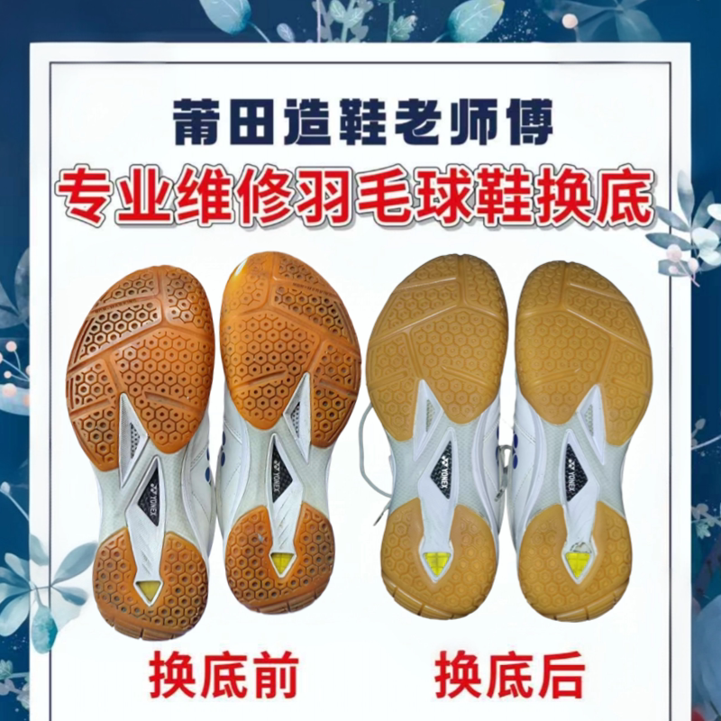 羽毛球鞋换底修复尤尼克斯更换牛筋底片SC65Z3无敌号9200修鞋店铺