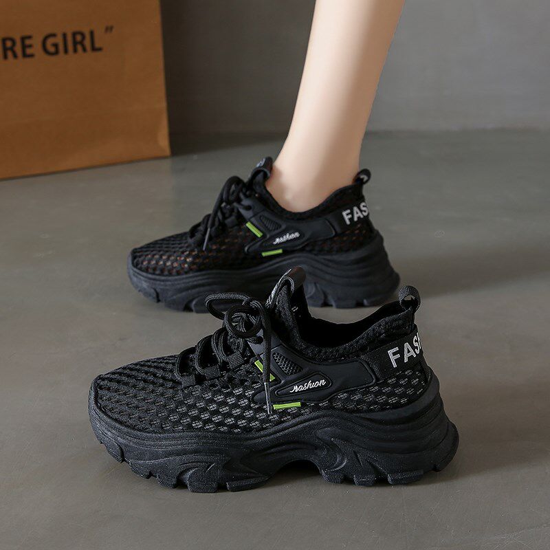 踩屎感软底防滑黑色运动鞋女透气网鞋夏季薄款久站不累脚工作鞋子