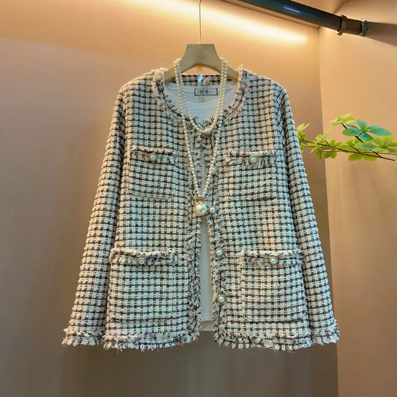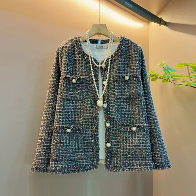 大码女装圆领毛边长袖小香风外套胖妹妹2026早春新款百搭洋气上衣