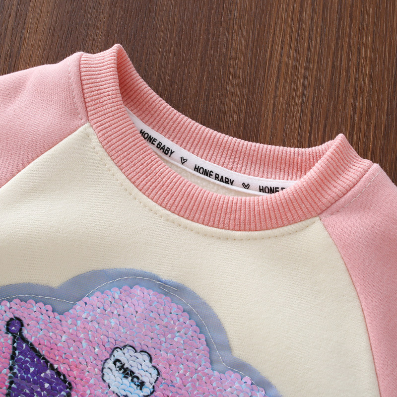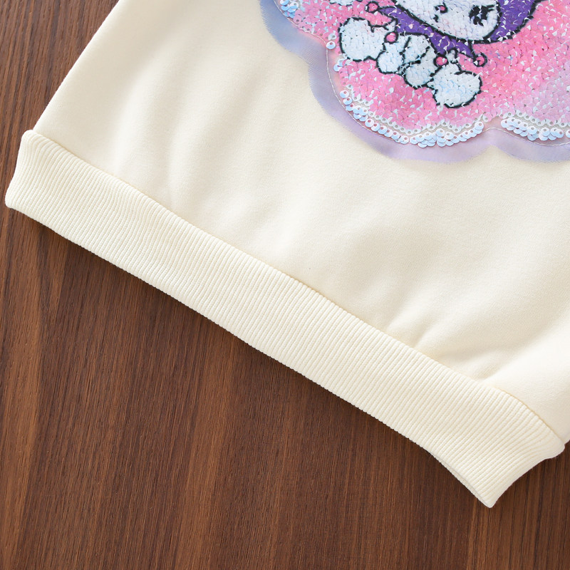 女童卫衣加绒秋冬款亮片图案库洛米女孩衣服儿童上衣冬装紫色粉色