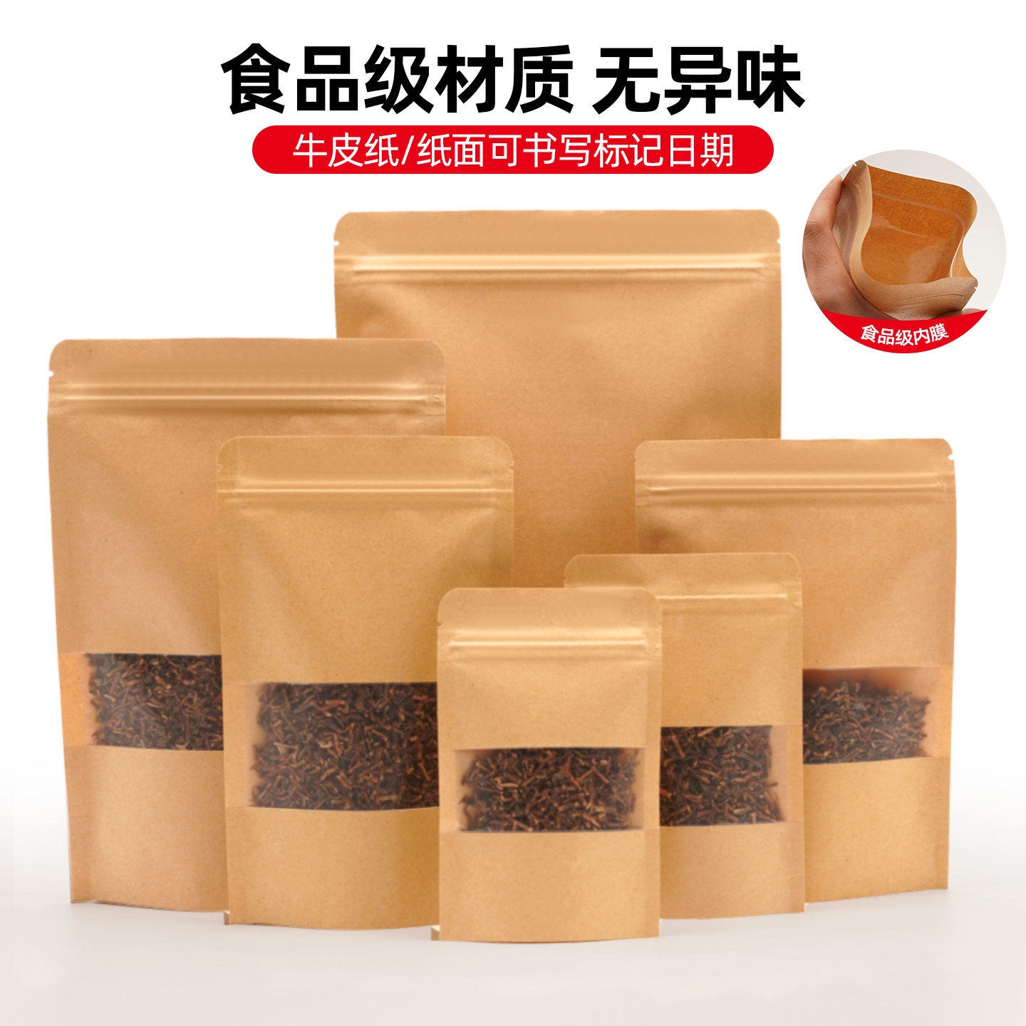 茶叶包装袋加厚牛皮纸自封袋大号一斤半斤装防潮密封袋茶叶分装袋