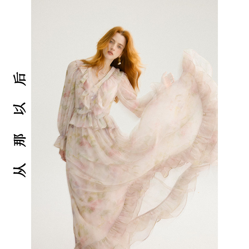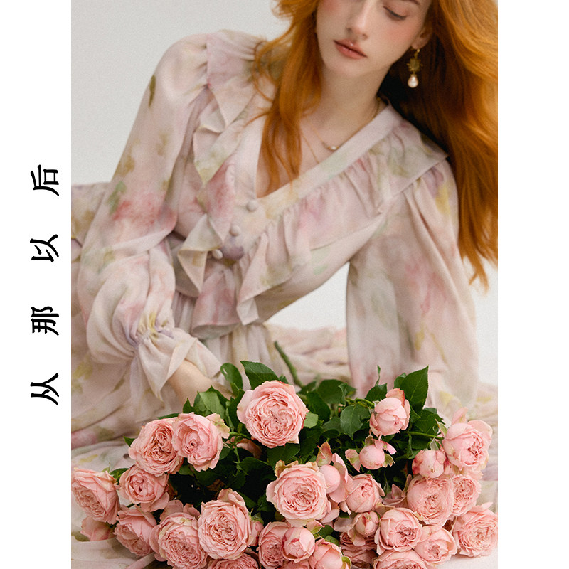 从那以后法式复古连衣裙高级感穿搭碎花裙长袖裙子荷叶边长裙女秋