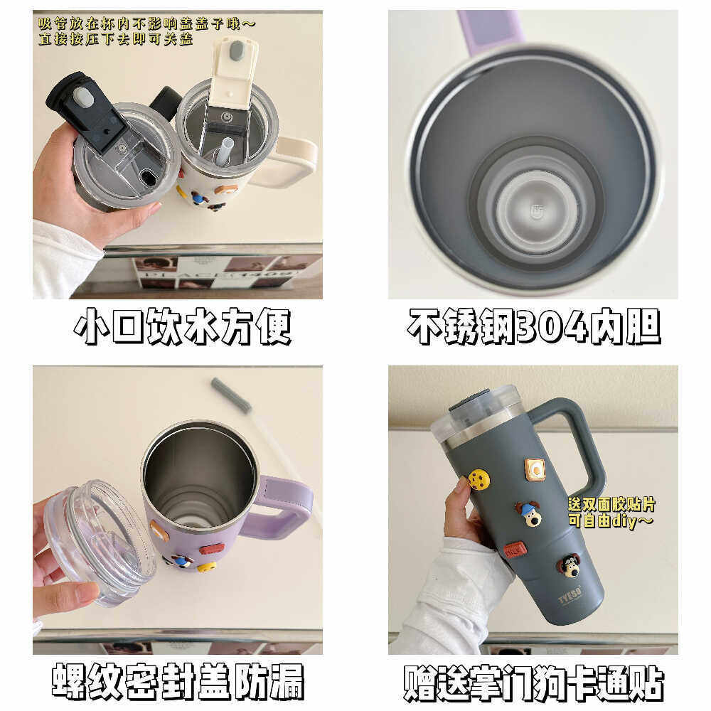 新款大容量带吸管保温杯女生304不锈钢冰霸杯男款大号车载巨无霸