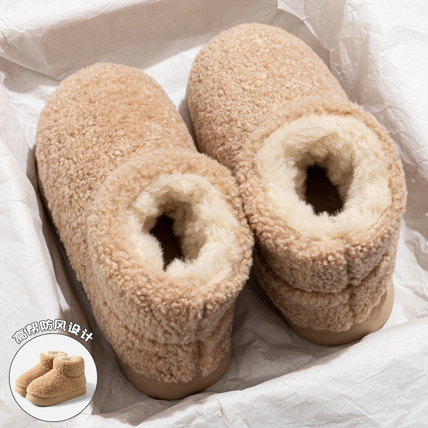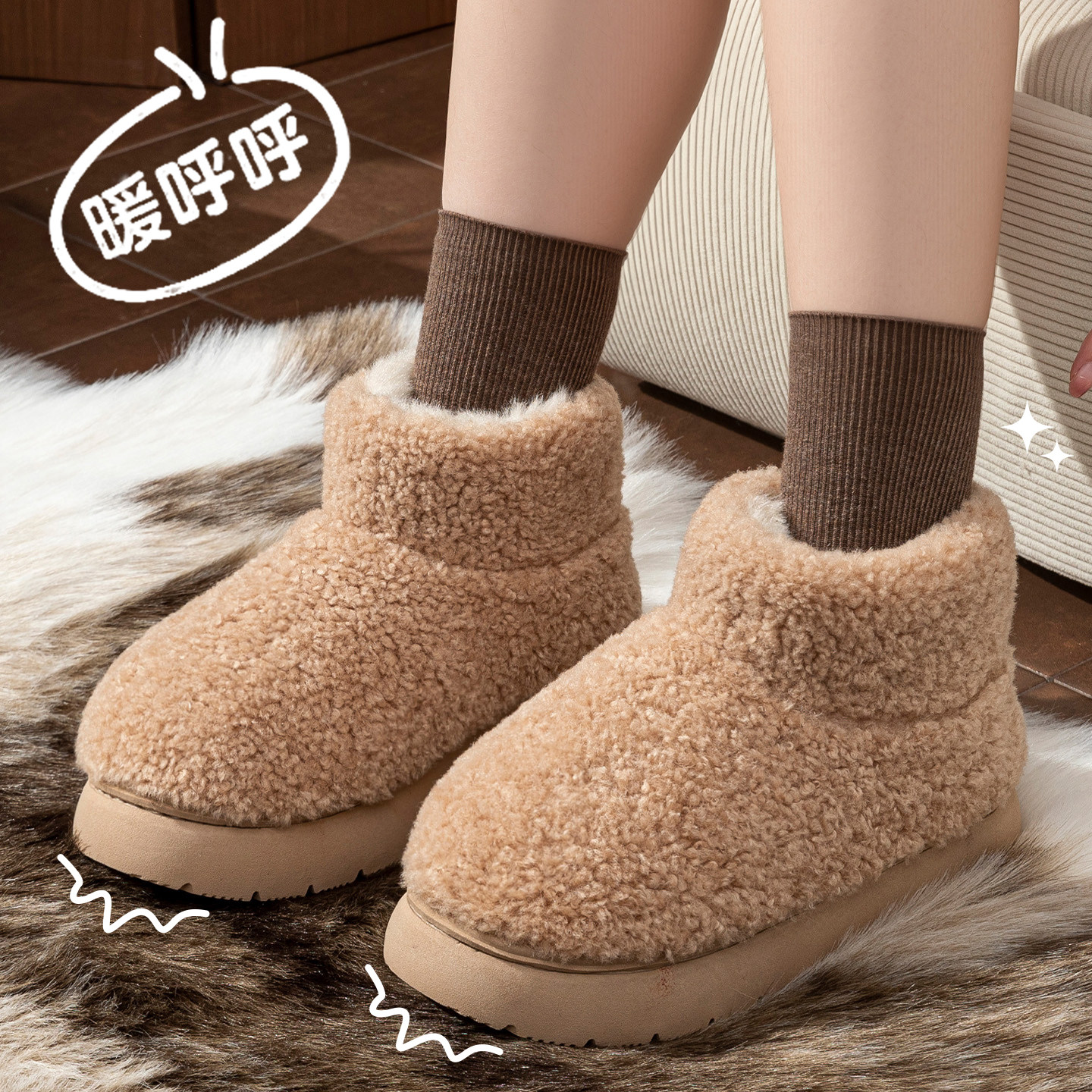 毛绒时尚雪地靴女款2025新款冬季加绒加厚羊羔绒厚底外穿保暖棉鞋