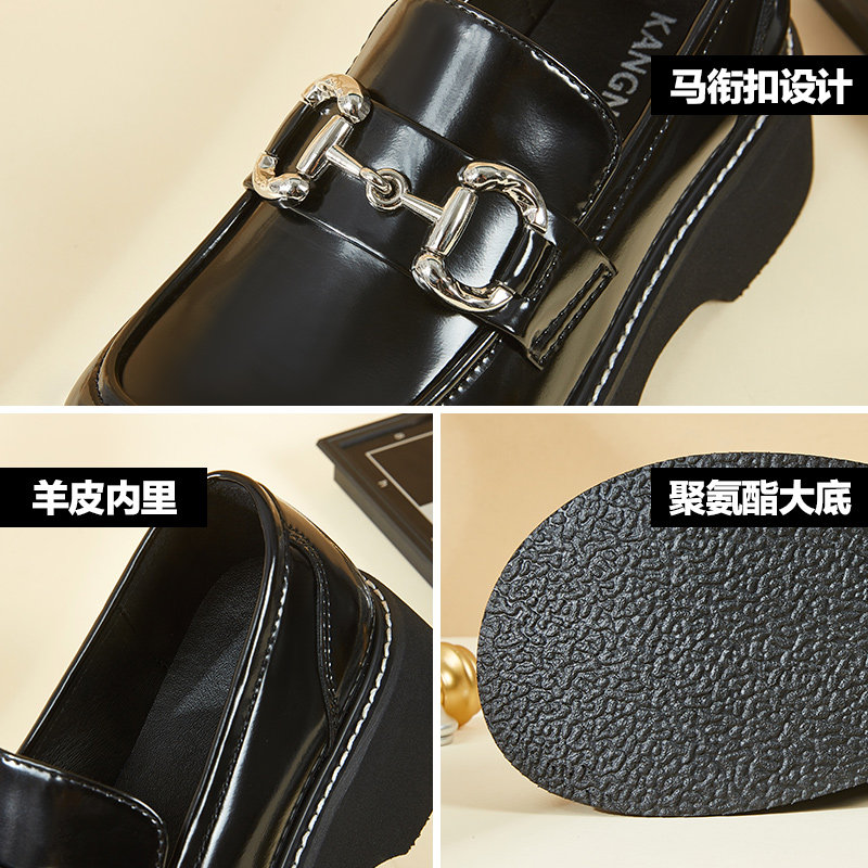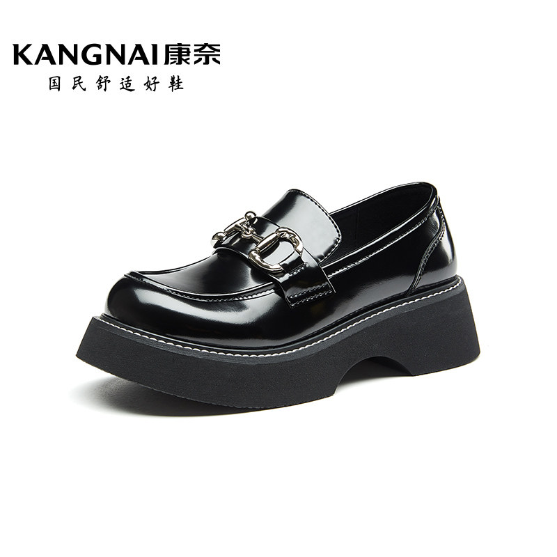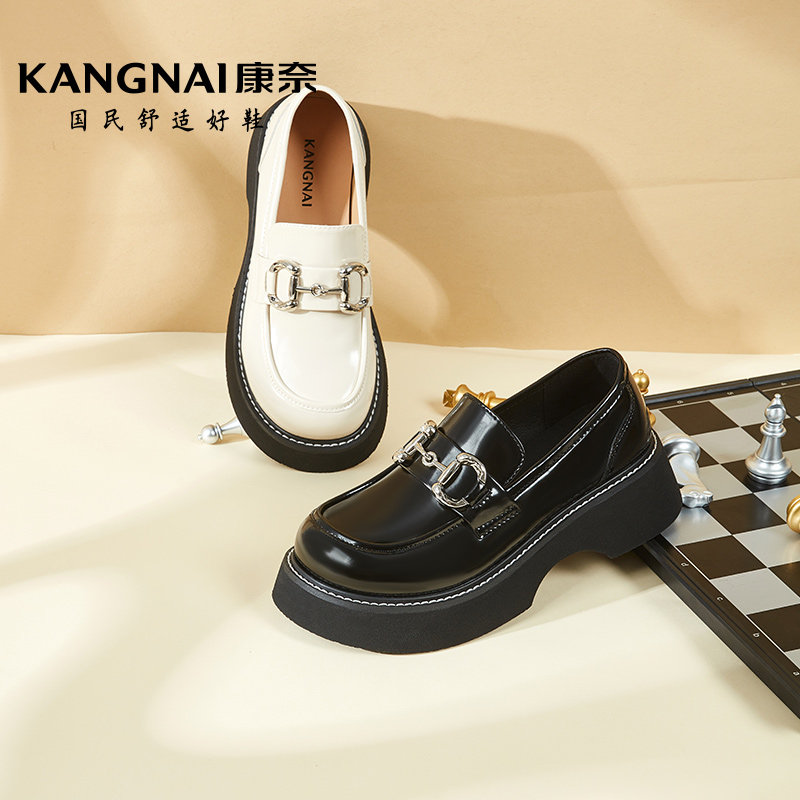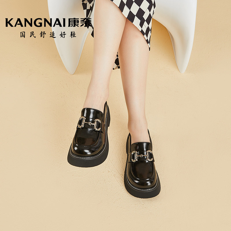 康奈女鞋春季新款马衔扣厚底JK乐福鞋英伦风一脚蹬真皮小皮鞋