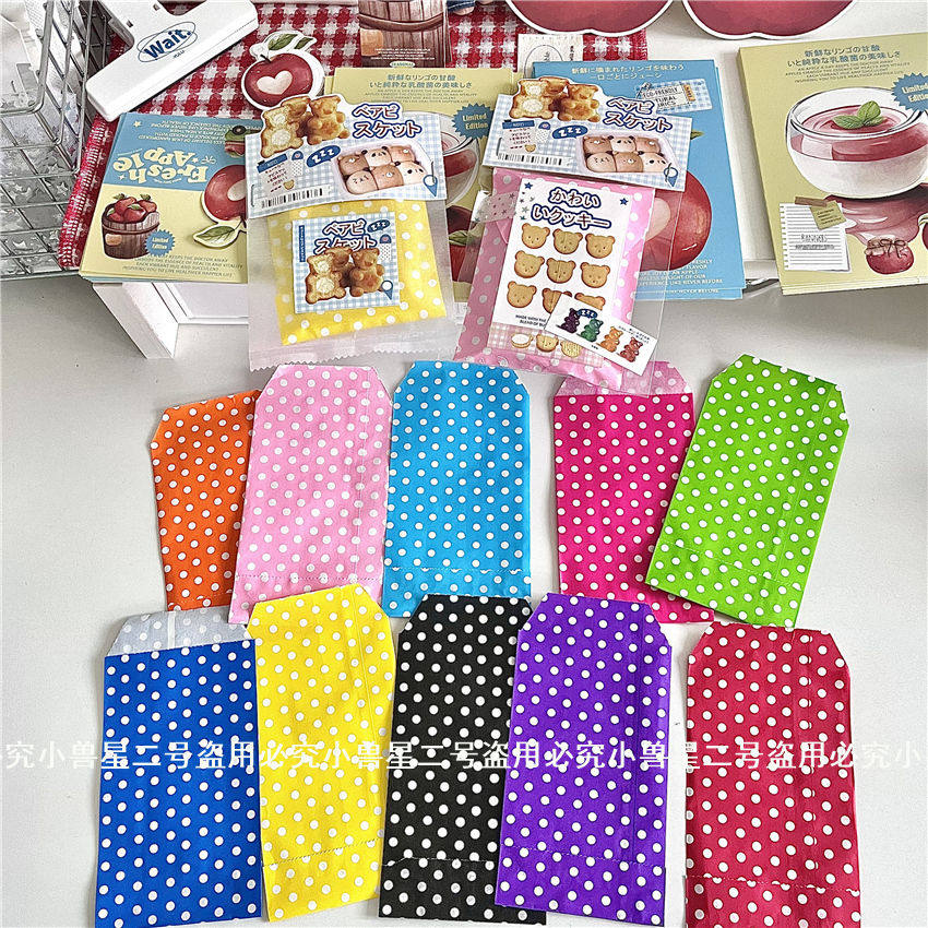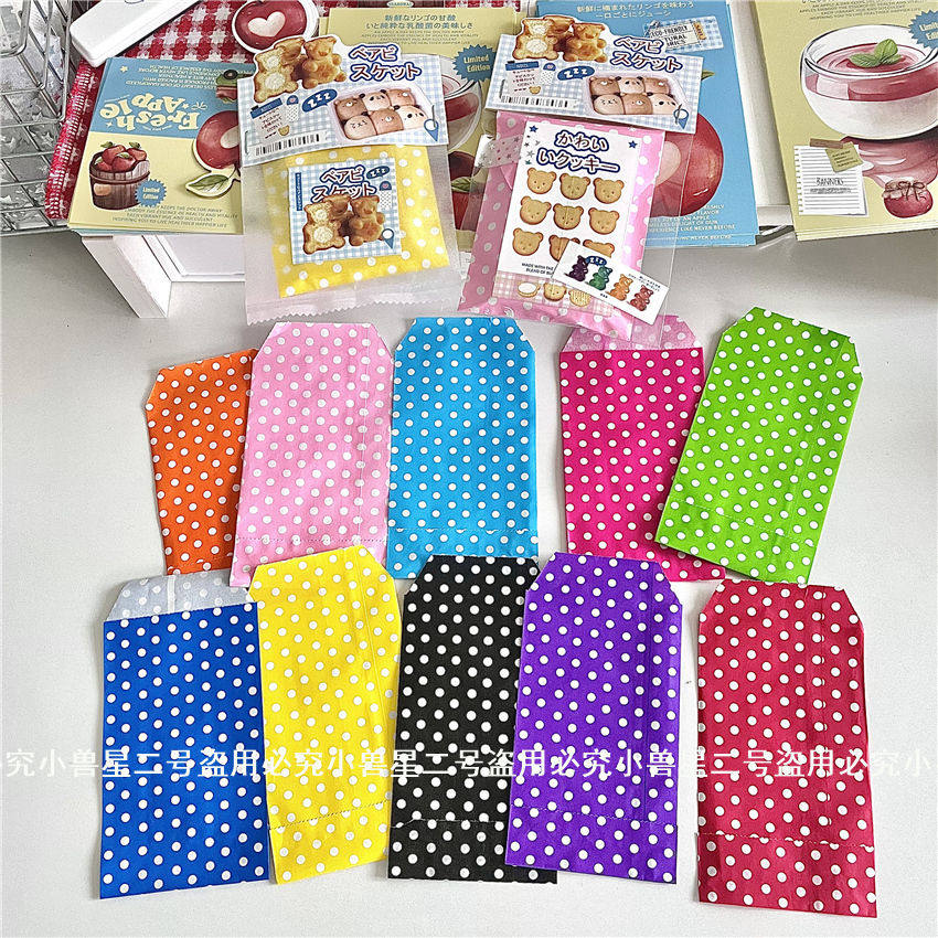 古早味彩色波点信封袋饰品礼物小卡包装袋圆点长条牛皮纸收纳袋子