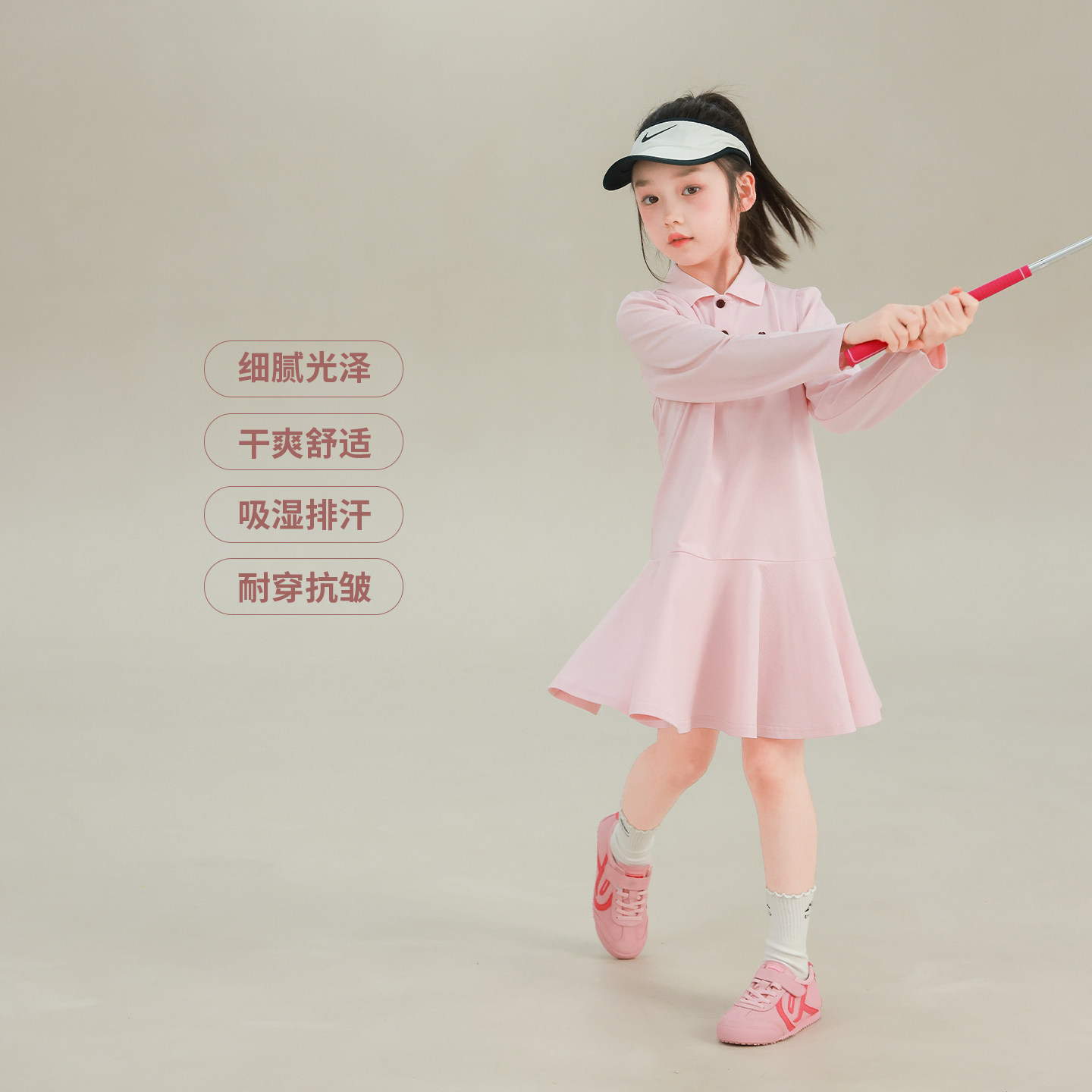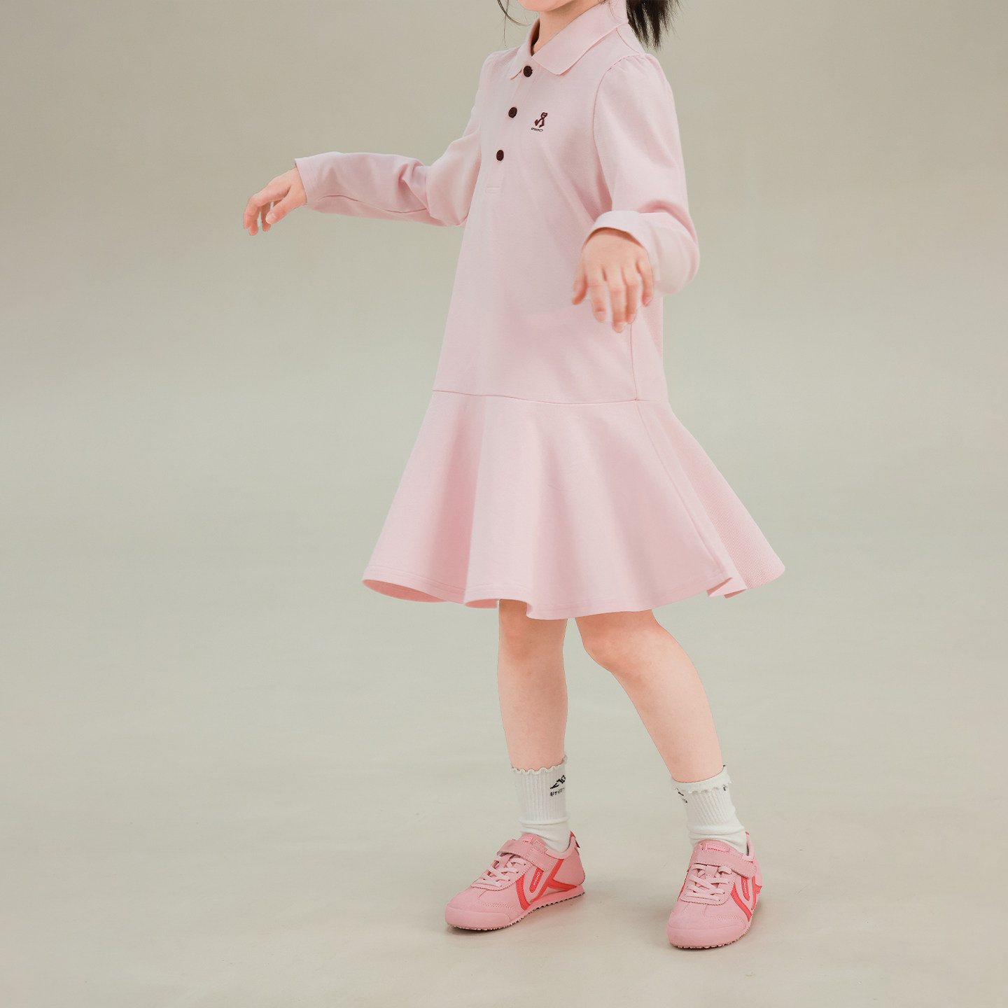 大耳象女童polo领连衣裙2026春季新款宝儿小标刺绣休闲长袖裙子