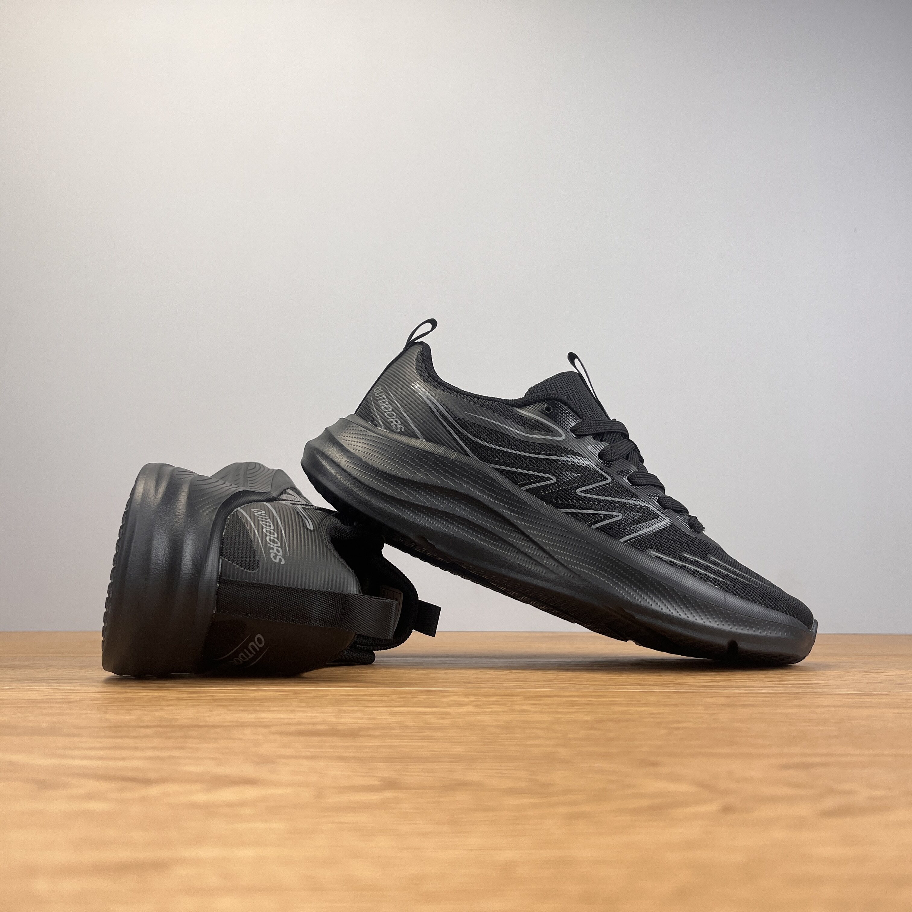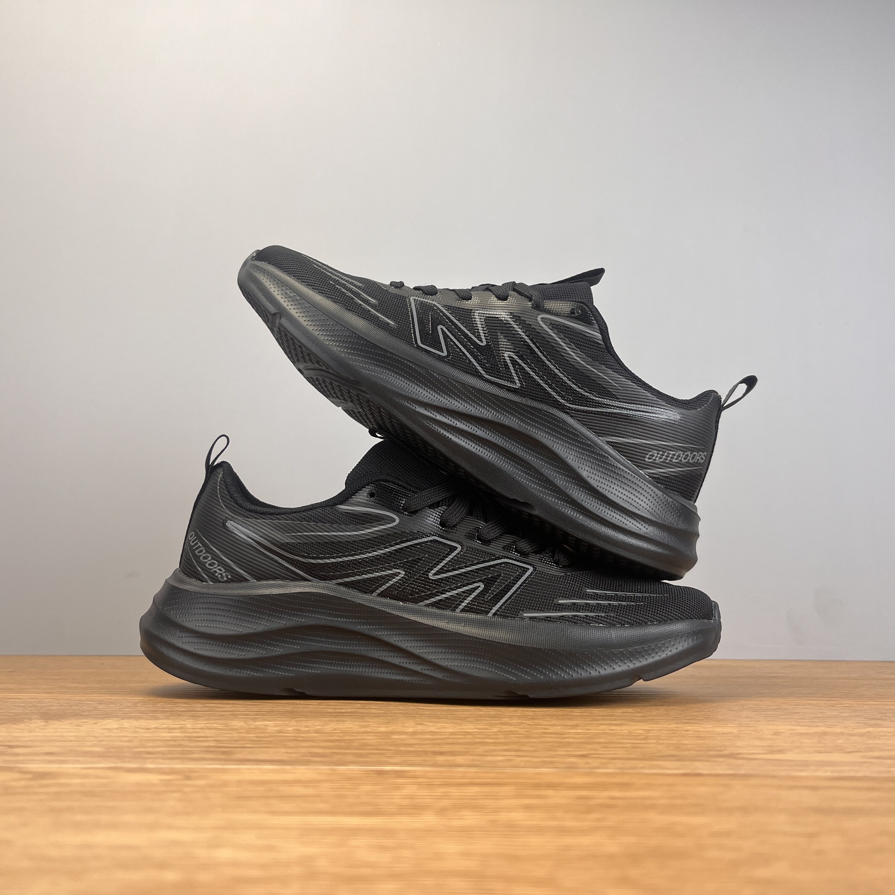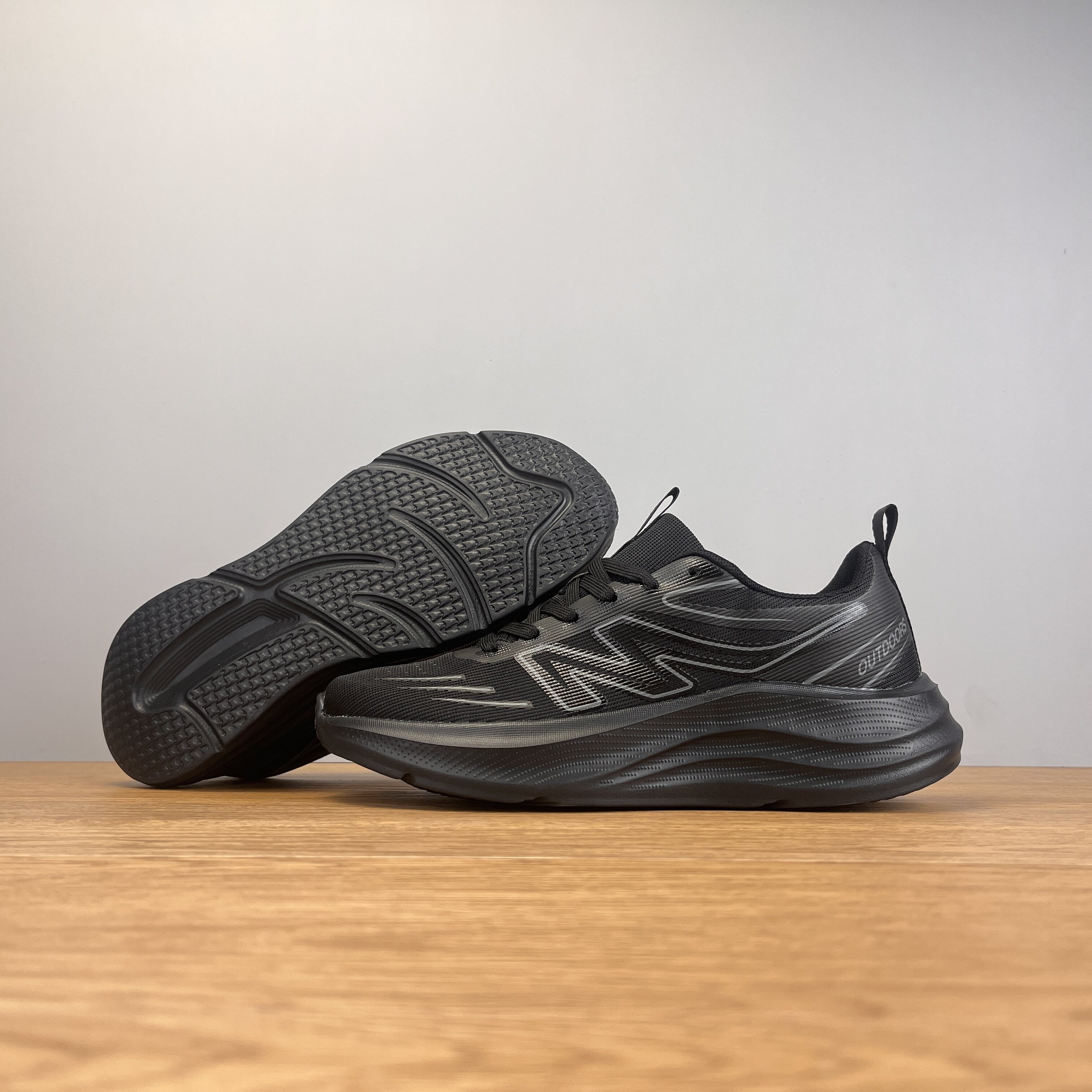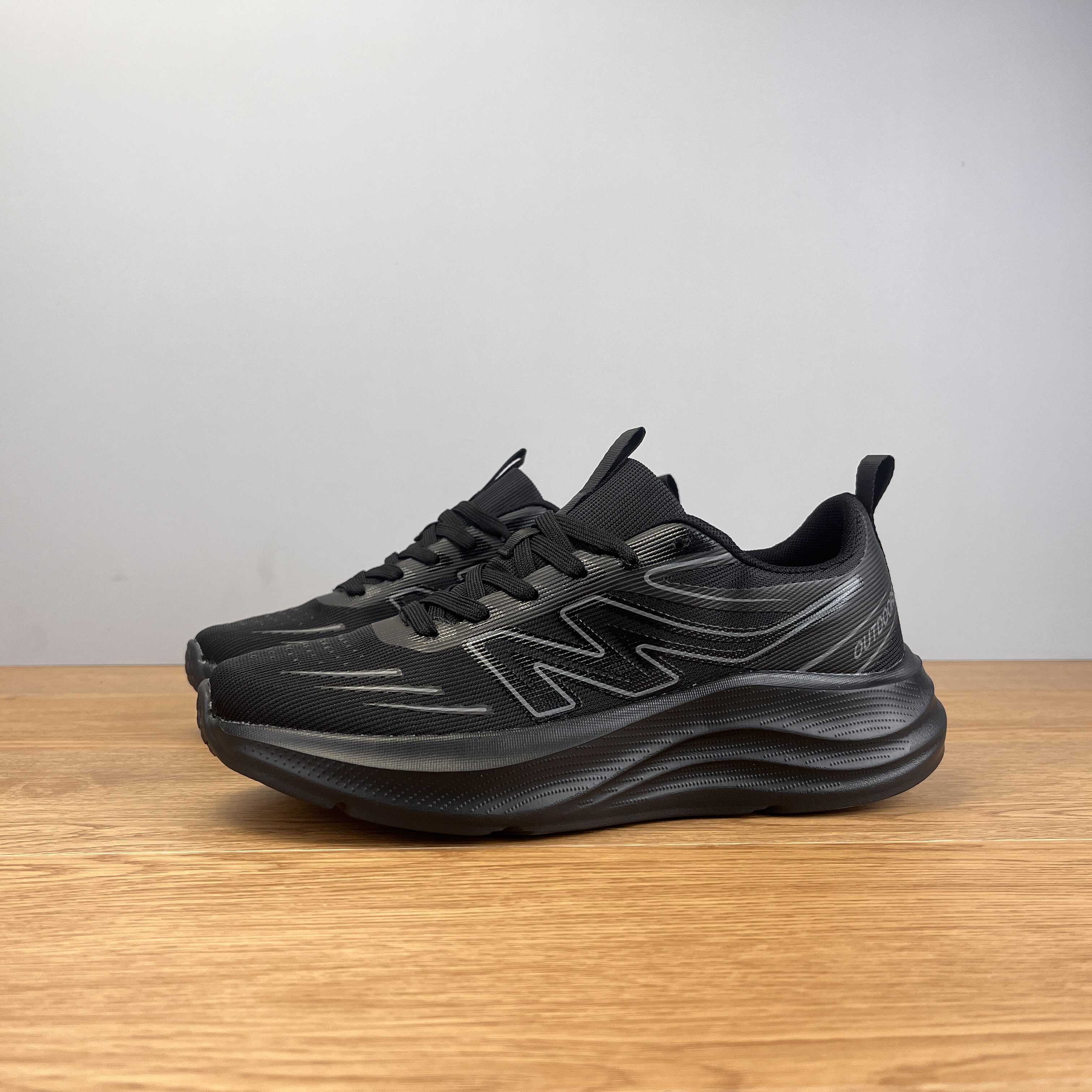 外贸出口超轻减震运动鞋男女防泼水网面透气轻便软底全黑色跑步鞋