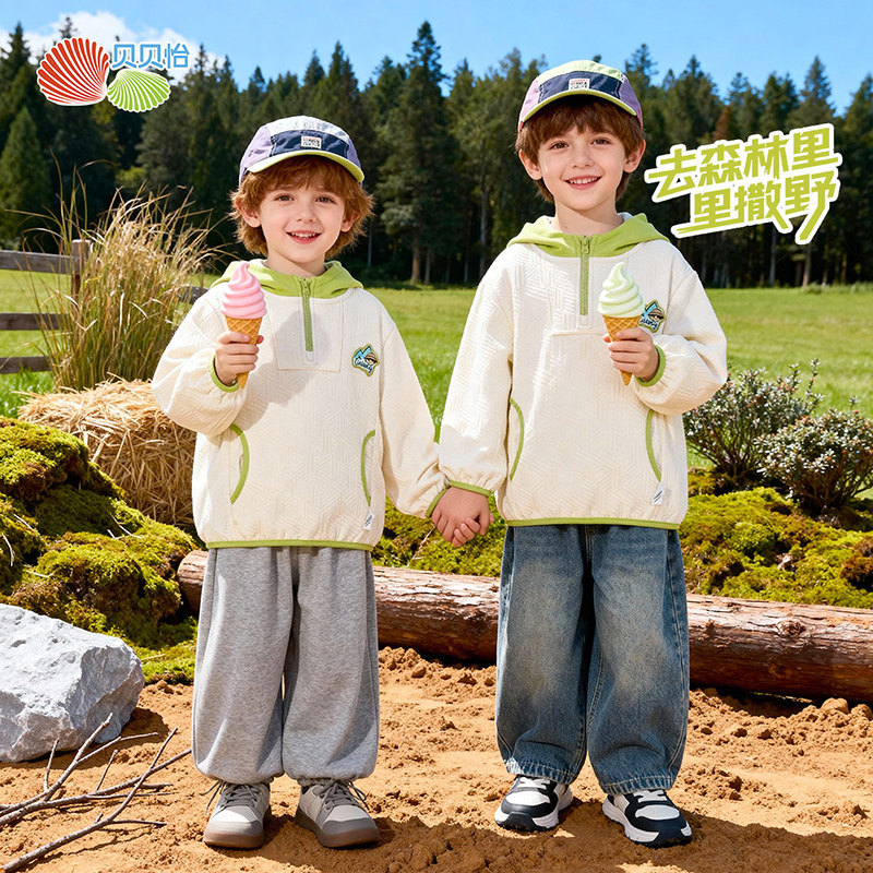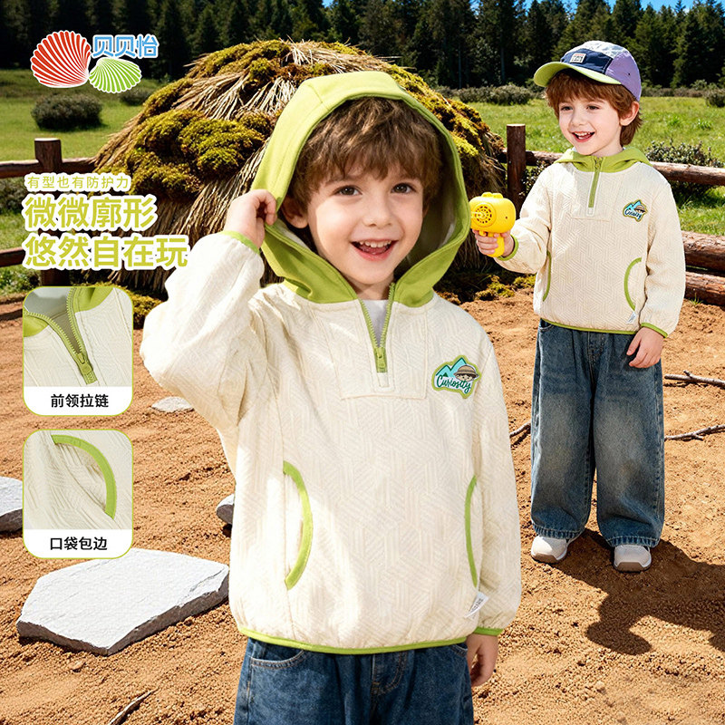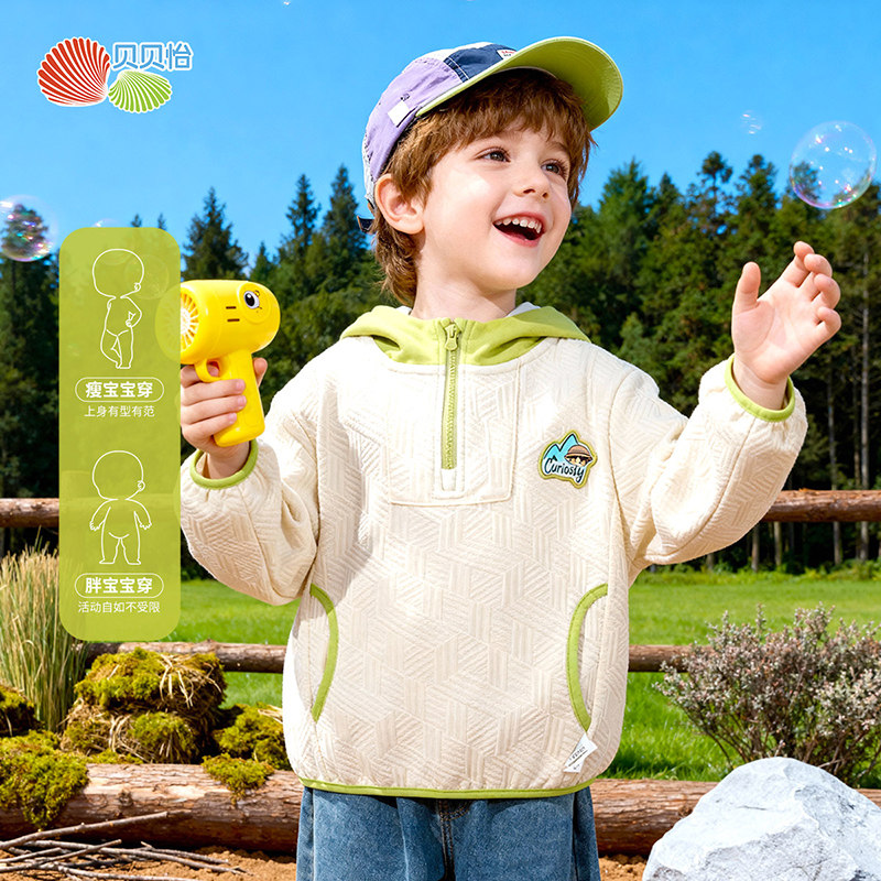 贝贝怡童装男童连帽带帽卫衣儿童休闲上衣2026春季新款男孩春装潮