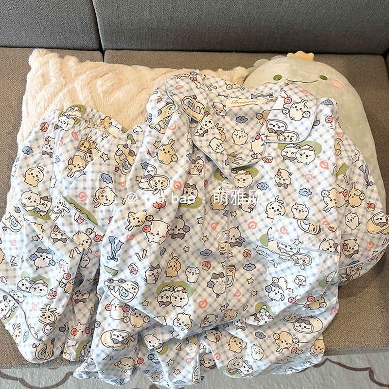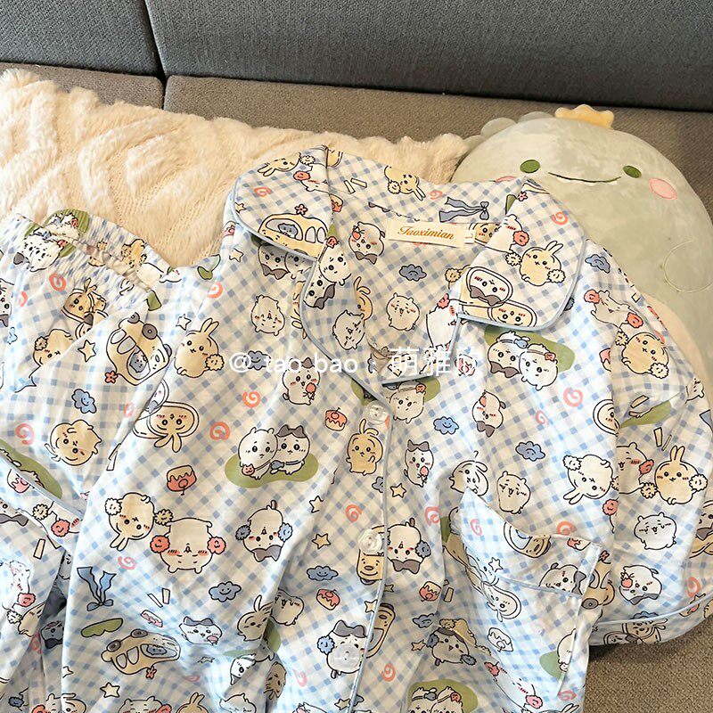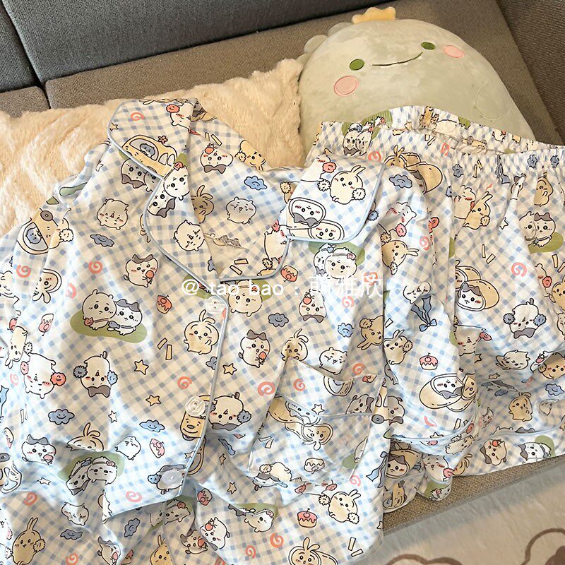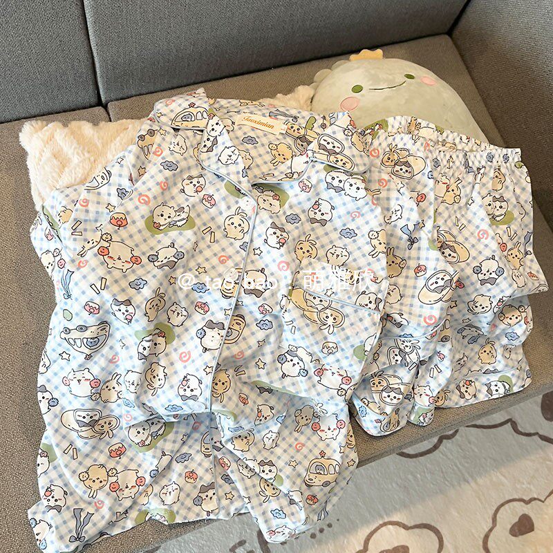 吉伊卡哇睡衣女款夏季纯棉短袖短裤两件套学生卡通可爱休闲家居服