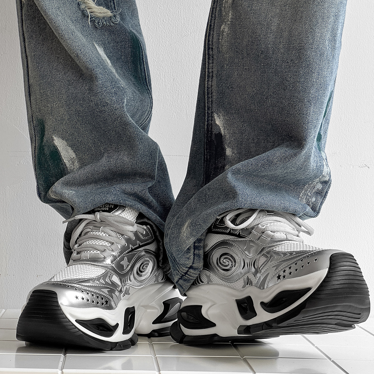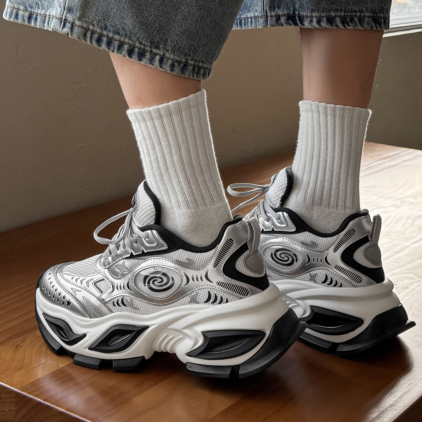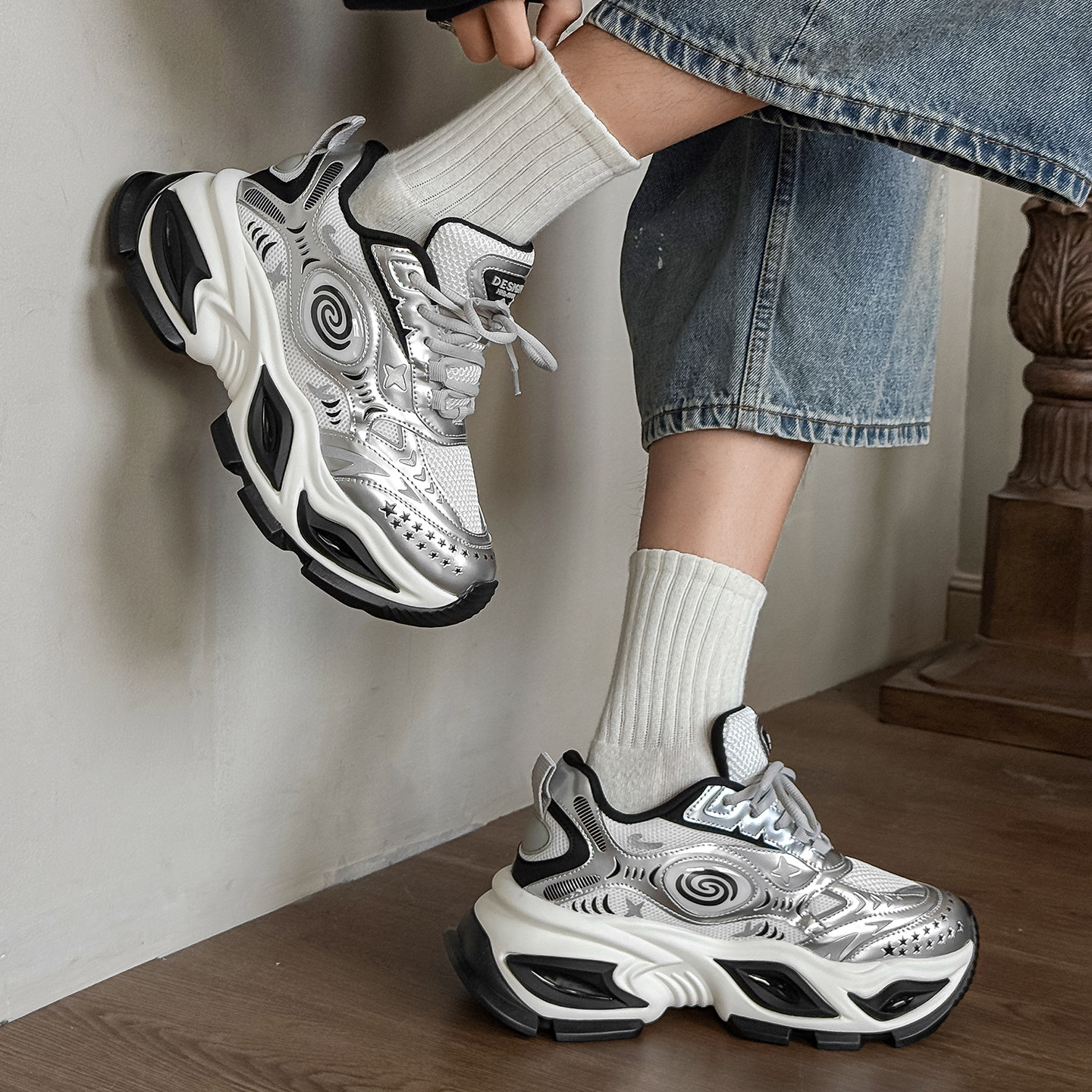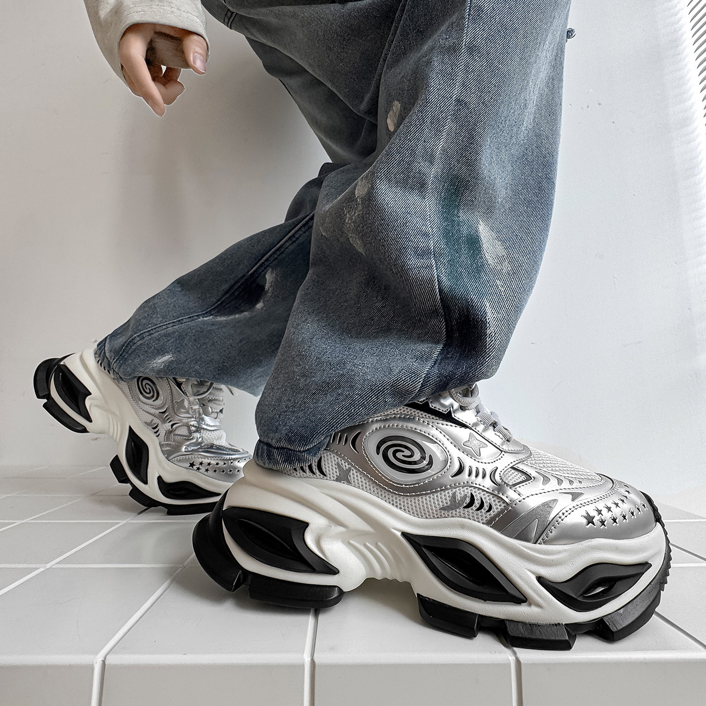 10CM隐形内增高鞋男款液态银机甲运动老爹鞋厚底休闲鞋子男鞋春季