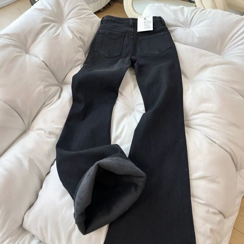 黑色弯刀加长牛仔裤高个子男款美式高街微喇vibe修身显瘦加绒裤子