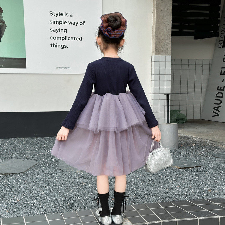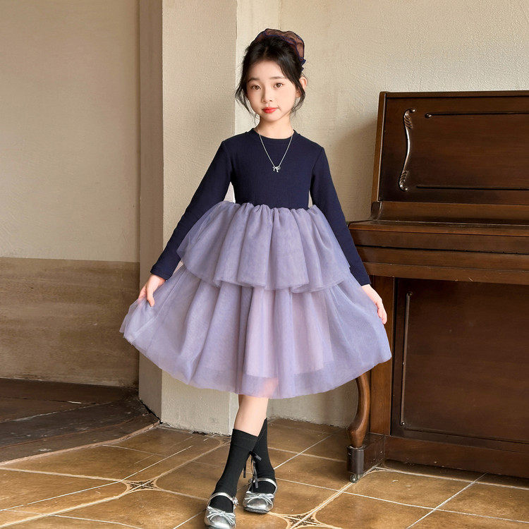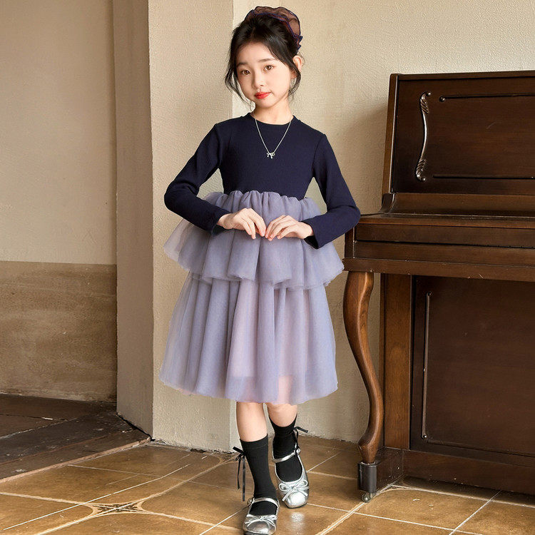 女童长袖连衣裙韩版春秋款蛋糕裙2026新款中大童纱裙洋气时尚裙子