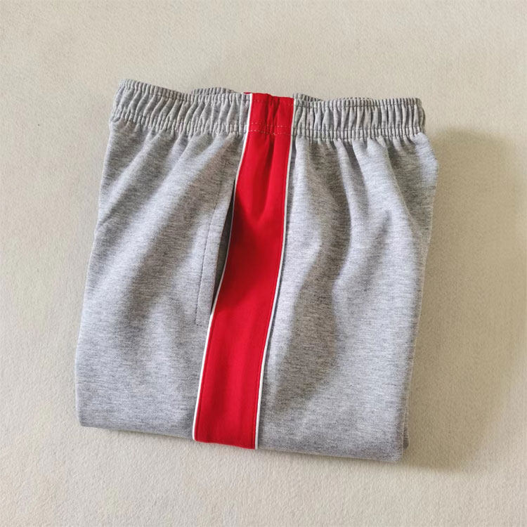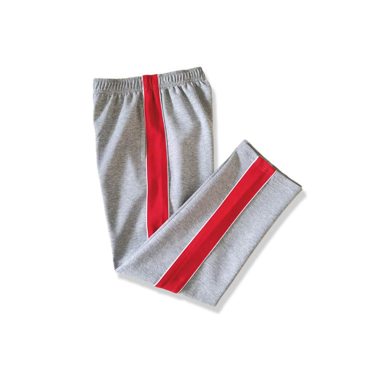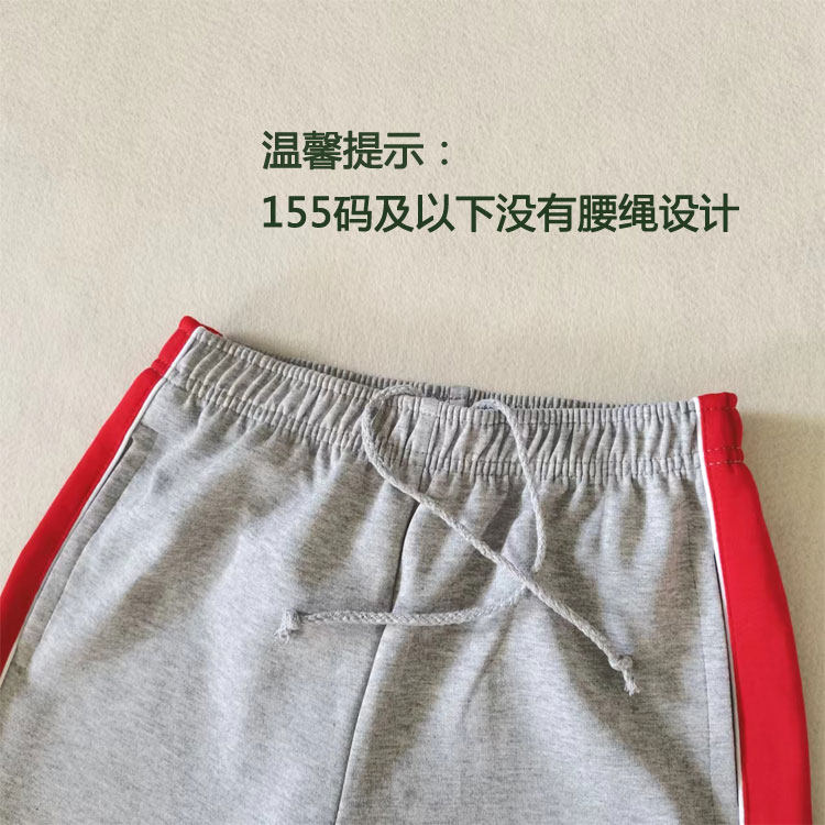灰色裤子纯棉男女童学生通用红宽边白细条宽松直筒运动裤春夏薄款