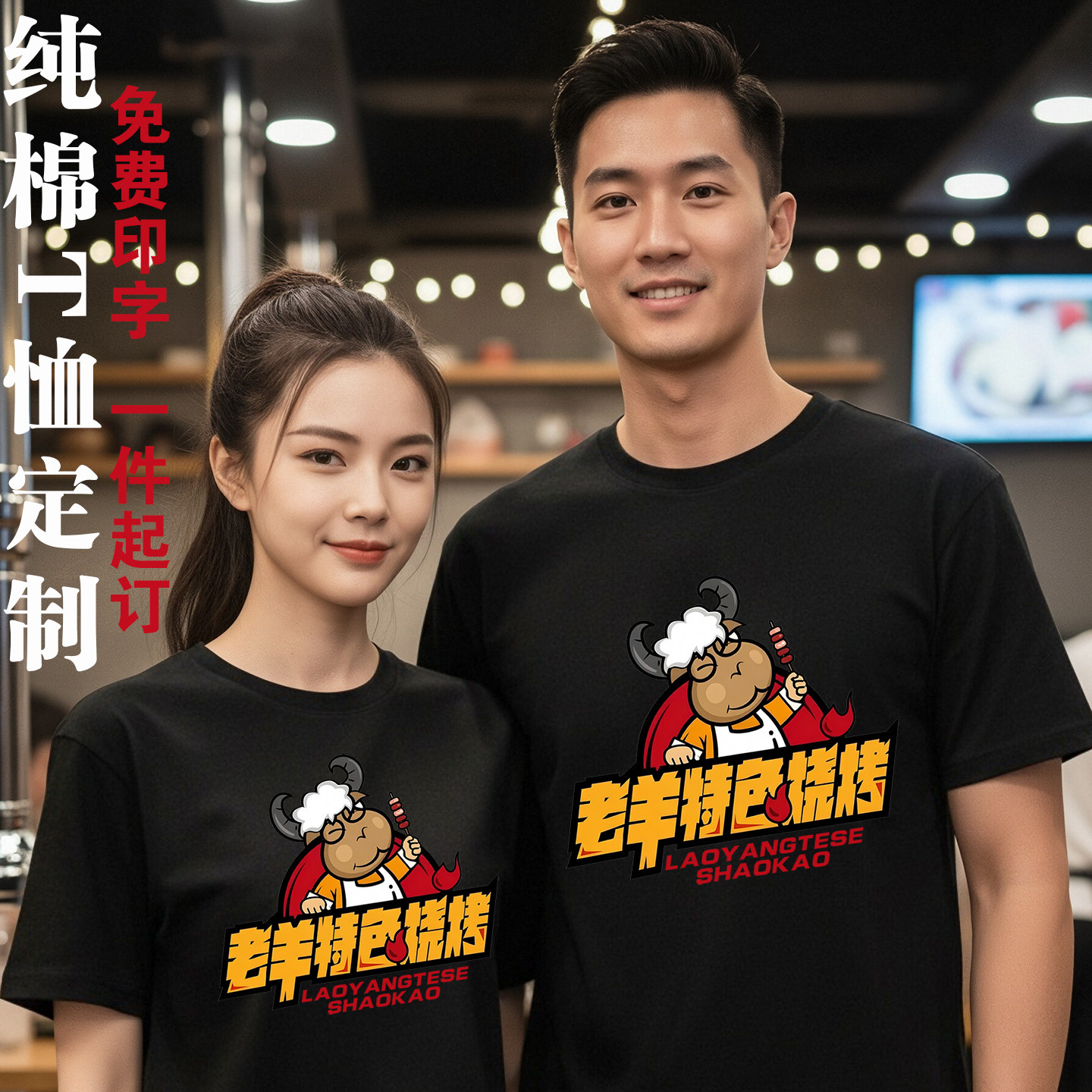 定制纯棉圆领短袖t恤工作服广告文化衫公司展会团体服装班服订做