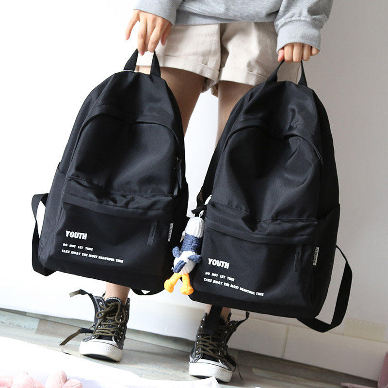 高中生简约大容量双肩包黑色书包女中学生初中生百搭大学生背包男