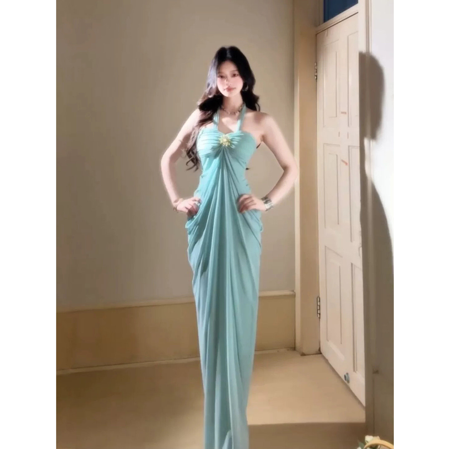 XZY 微胖海边度假风薄纱V领连衣裙女26年夏季纯欲性感鱼尾长裙子