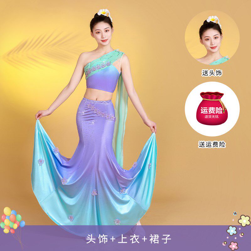 新款成人女新款傣族舞蹈裙云南西双版纳艺考剧O目服装孔雀舞半身