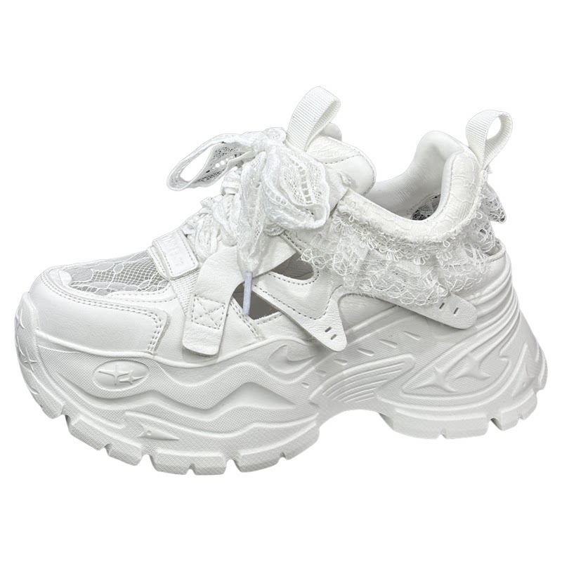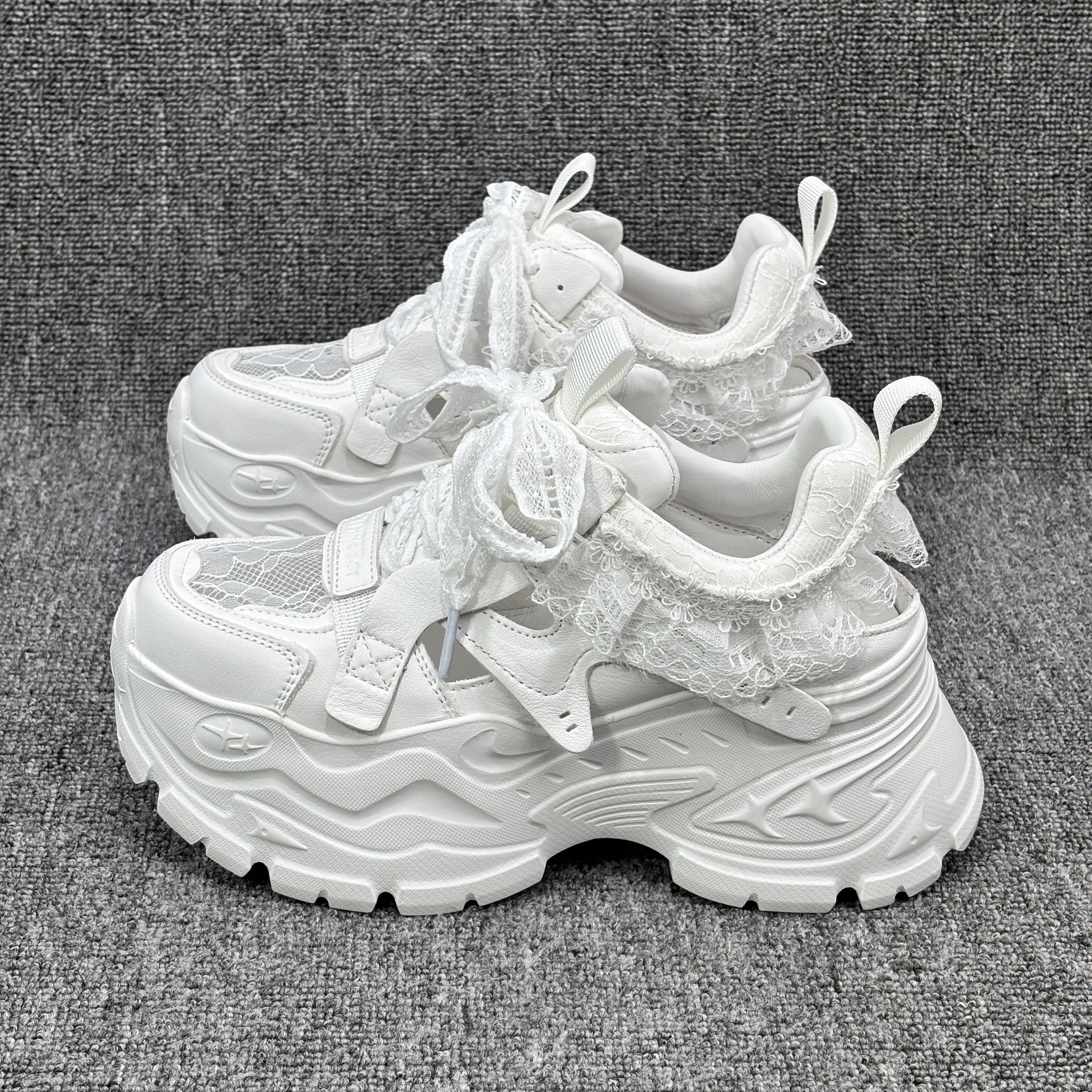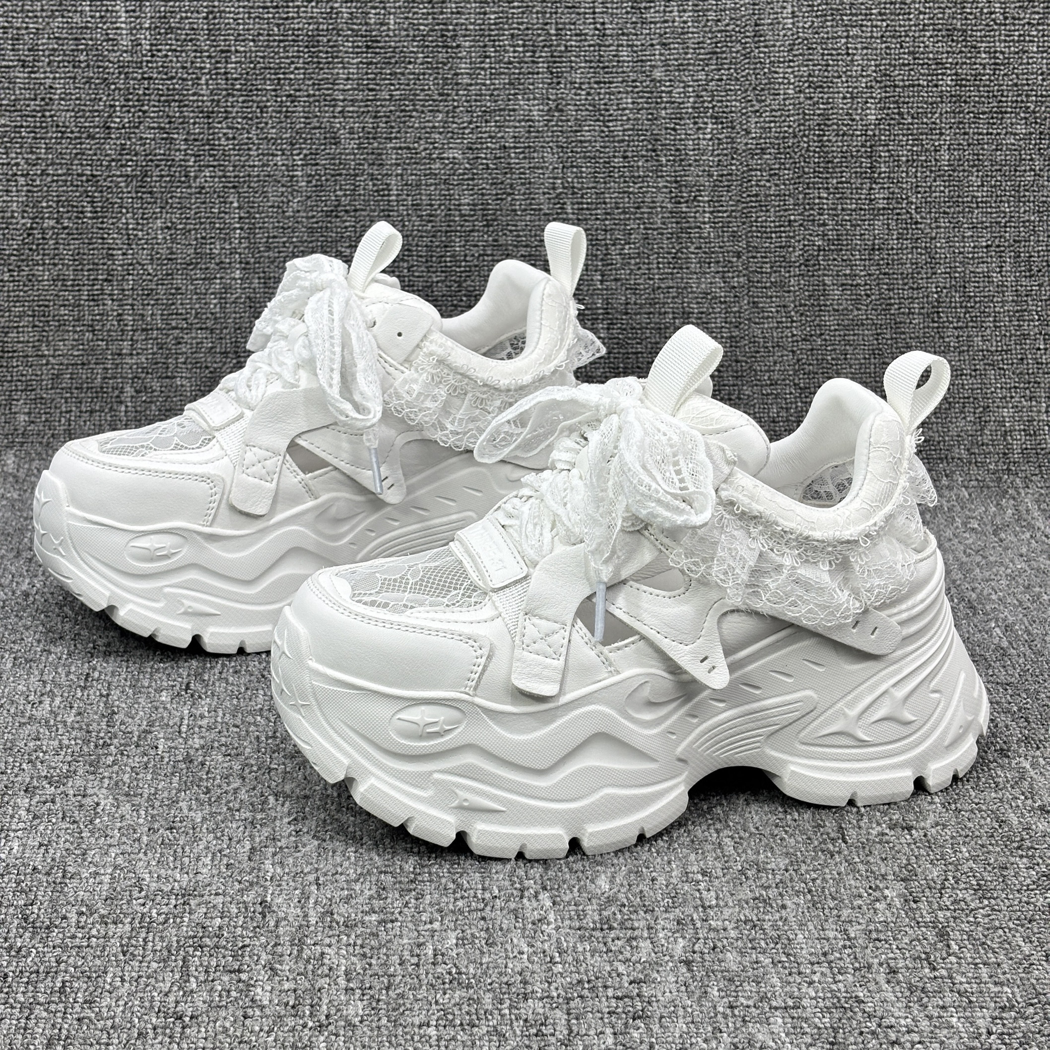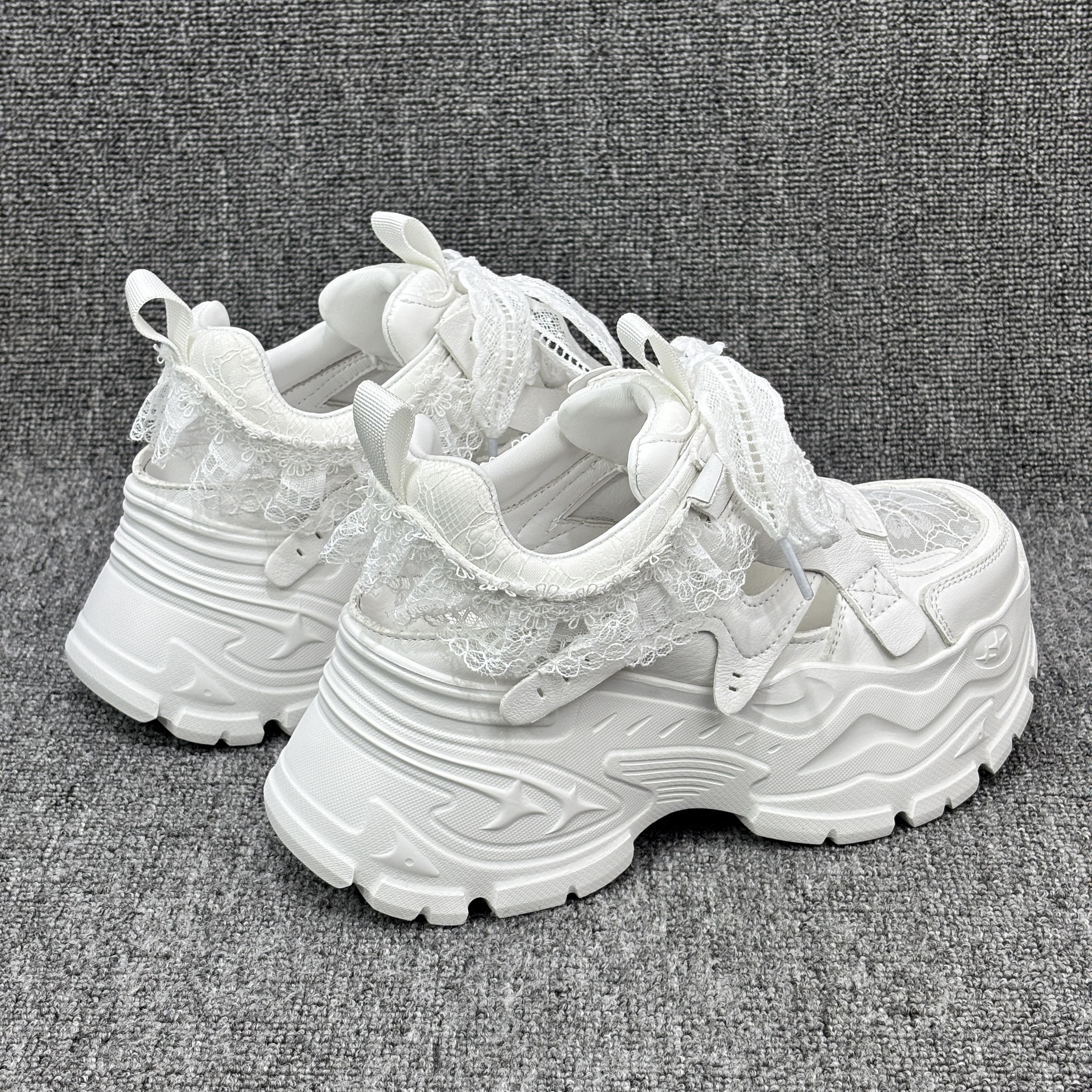 欧货2026新款真皮厚底增高小白鞋欧洲站透气蕾丝网面镂空老爹鞋女