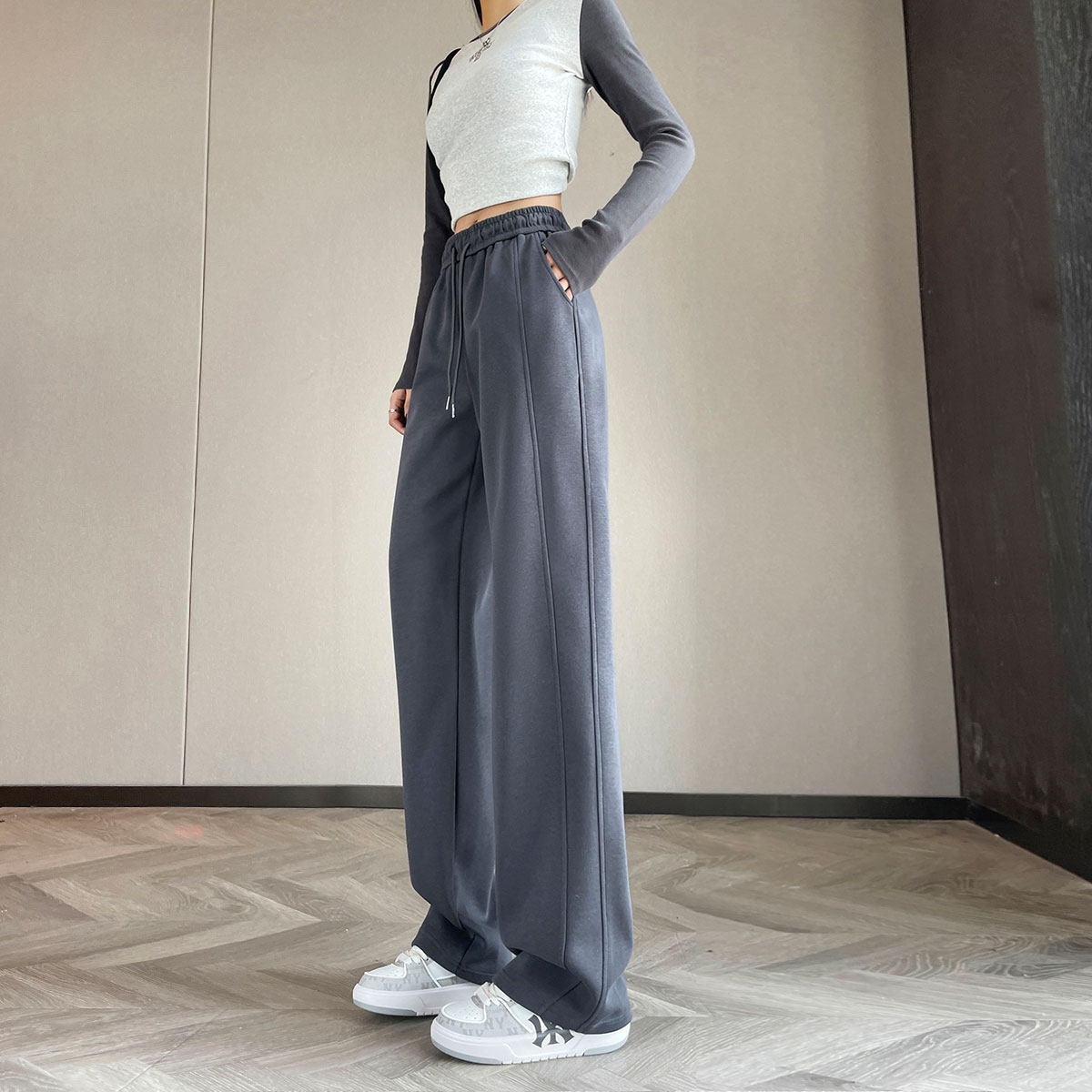 青少年初中高中学生少女裤子加长版高个子春秋直筒运动阔腿休闲裤