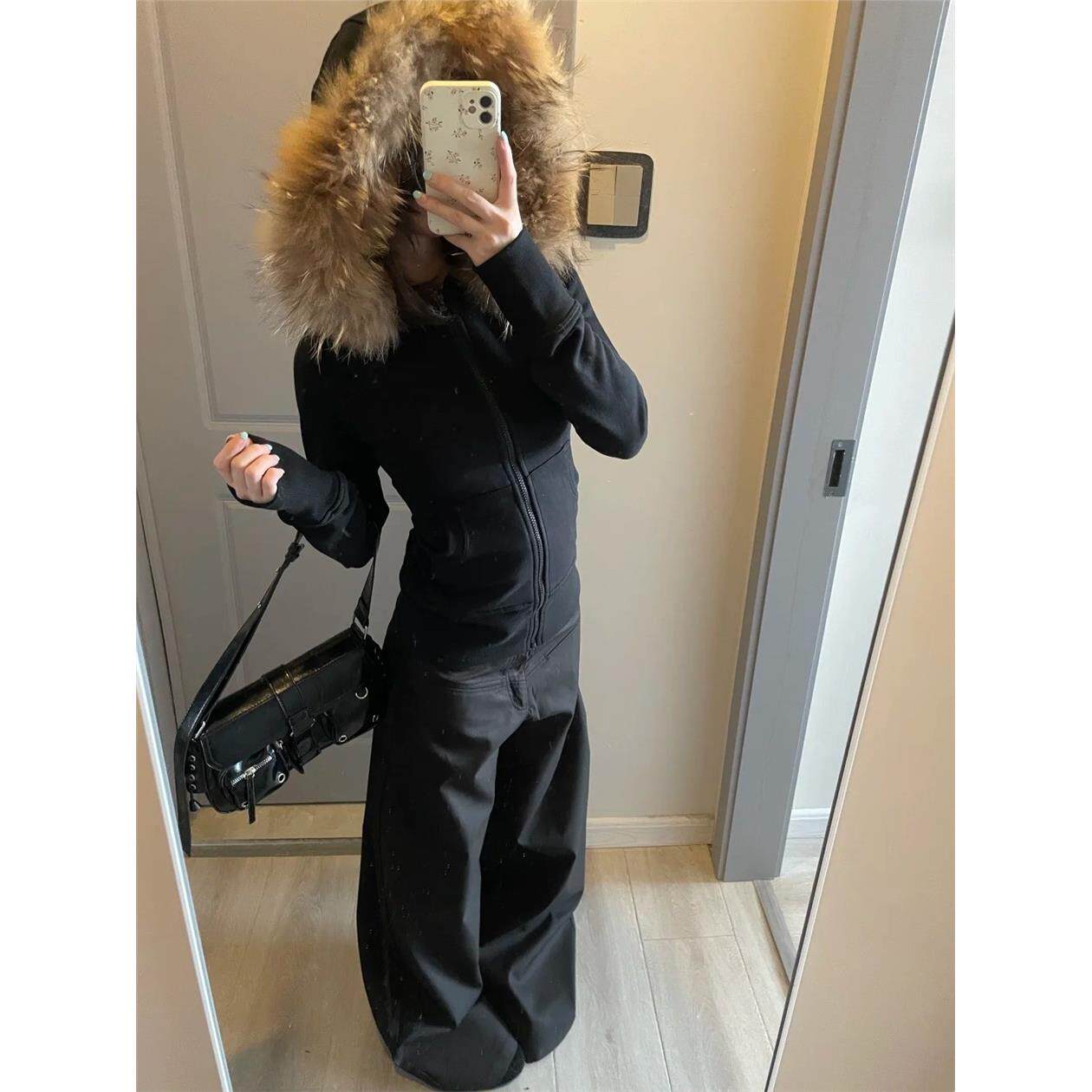 黑色修身毛领卫衣外套女款秋冬天短款收腰冬季韩系早秋季穿搭上衣